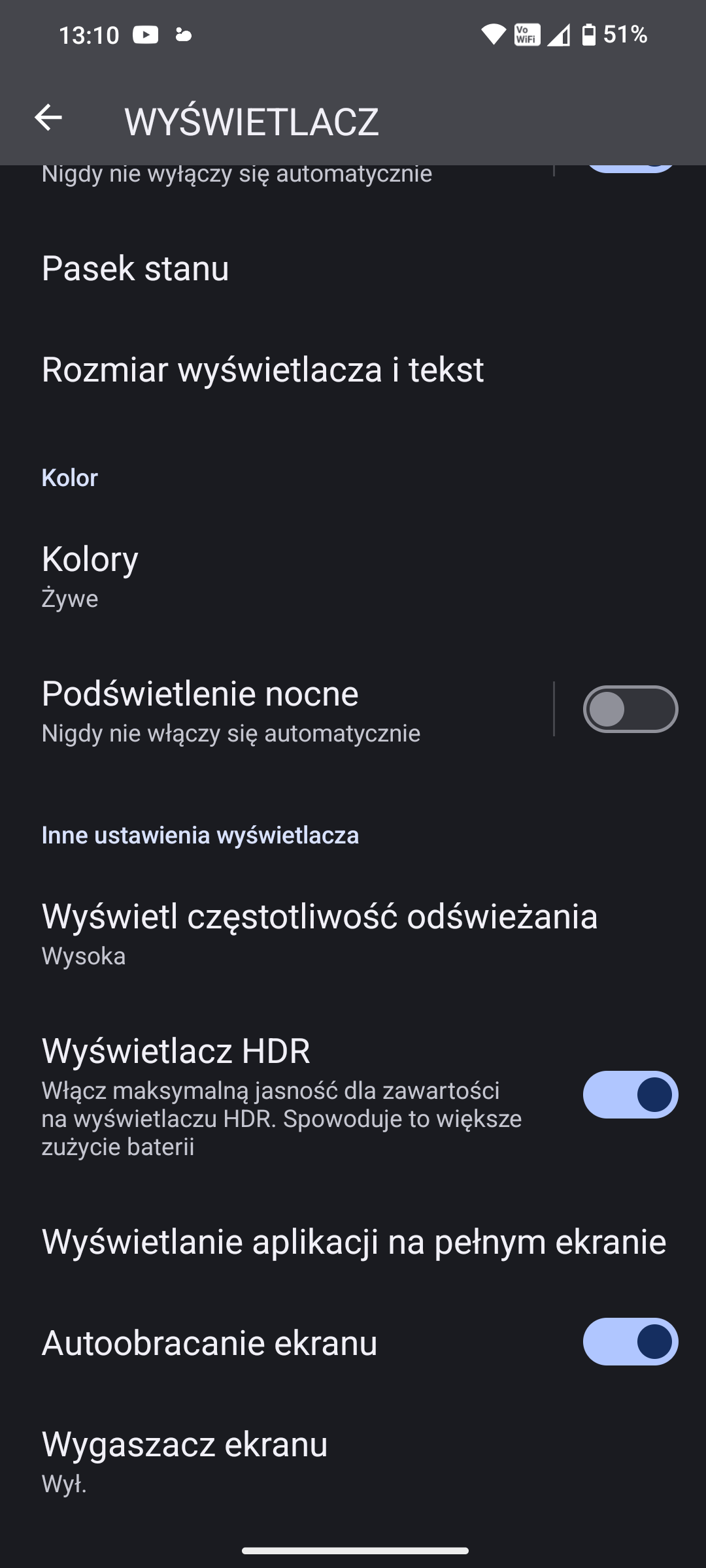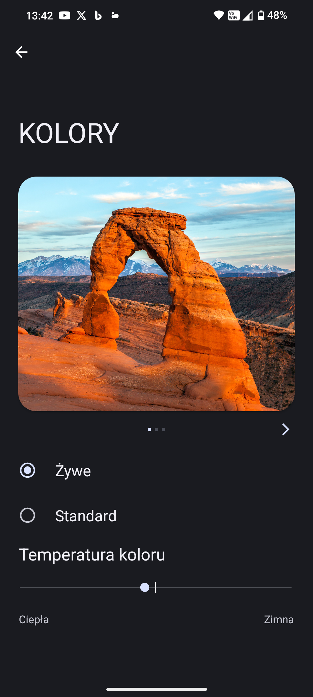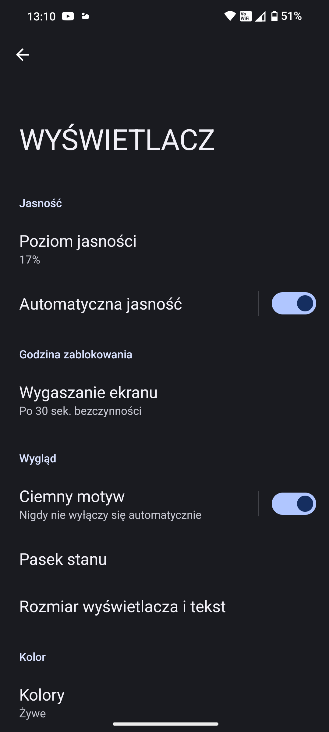 Jakość wyświetlanych kolorów nie odgrywa w tym segmencie aż takiej roli jak we flagowcach, jednak CMF Phone 1 radzi sobie z tym bardzo dobrze. W ustawieniach znaleźć można dwa presety – Żywe i Standard, celujące odpowiednio w przestrzenie barwne DCI-P3 i sRGB, dla każdego można dodatkowo zmienić temperaturę barwową bieli, ale nie wydaje mi się, by było to niezbędne – kolory są bardzo dobre na ustawieniach domyślnych.