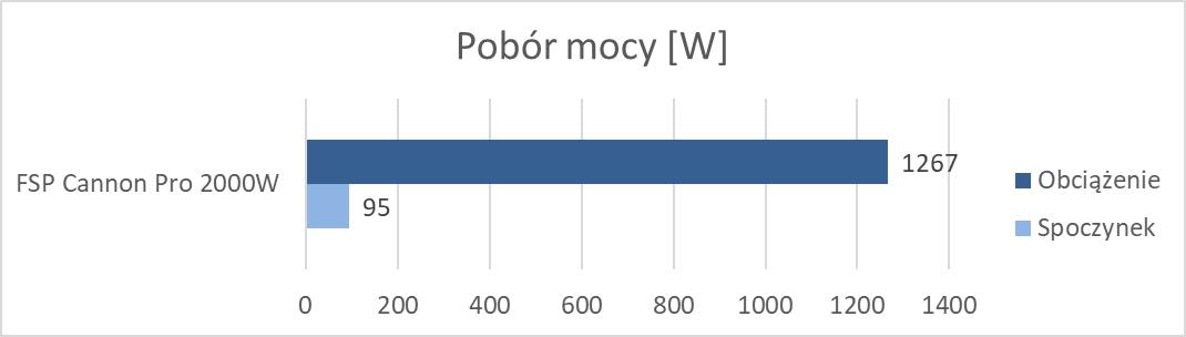 FSP Cannon Pro 2000W ma też odznaczenie 80 Plus Gold 230V EU. Zgodnie z nim dla obciążenia 10% sprawność wynosi 88,61%, dla 20% – 92,11%, dla 50% – 93,26%, a dla 100% – 90,51%. Pod tym względem jest więc również bardzo dobrze.