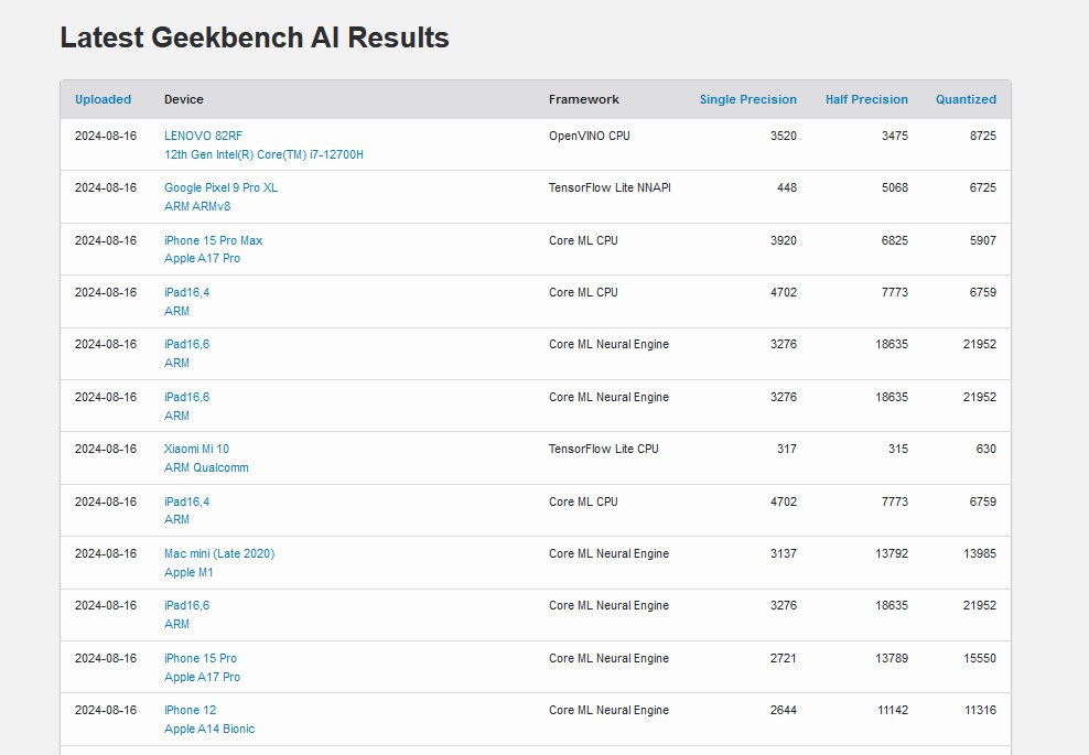 Geekbench AI zapewnia trzy ogólne wyniki – wysoce precyzyjne, z połową precyzji oraz skwantowane. Dlaczego akurat tak? Ponieważ projekty sprzętu oraz wykorzystania SI różnią się w zależności od urządzenia. Tak samo obciążenia związane z procesorem różnią się pod względem sposobu wykorzystania wielu rdzeni lub wątków do skalowania wydajności. Obciążenia sztucznej inteligencji obejmują szereg poziomów precyzji, w zależności od wymaganego zadania, dostępnego sprzętu i platform pośrednich.