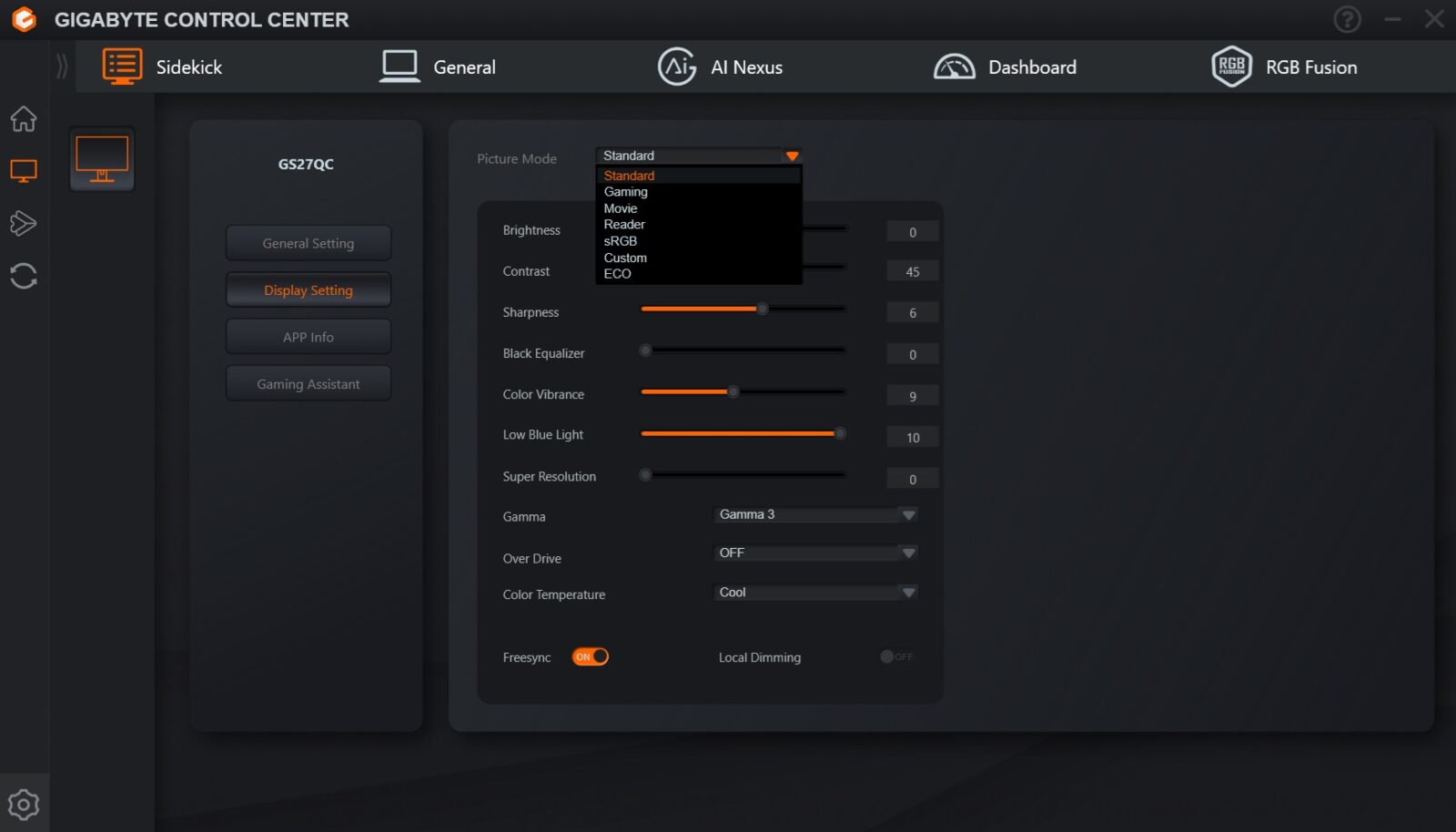 Oprogramowanie i ustawienia Gigabyte GS27QC