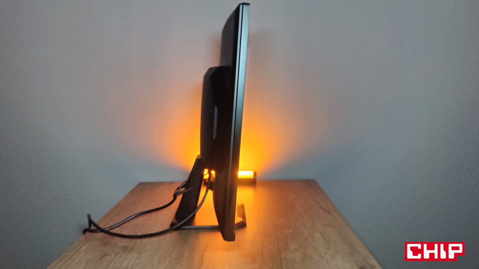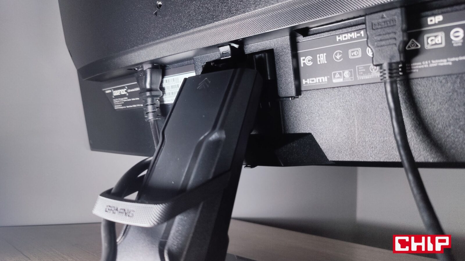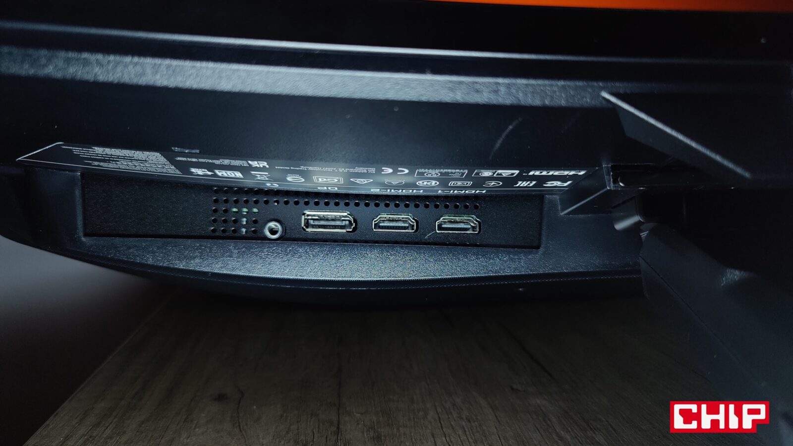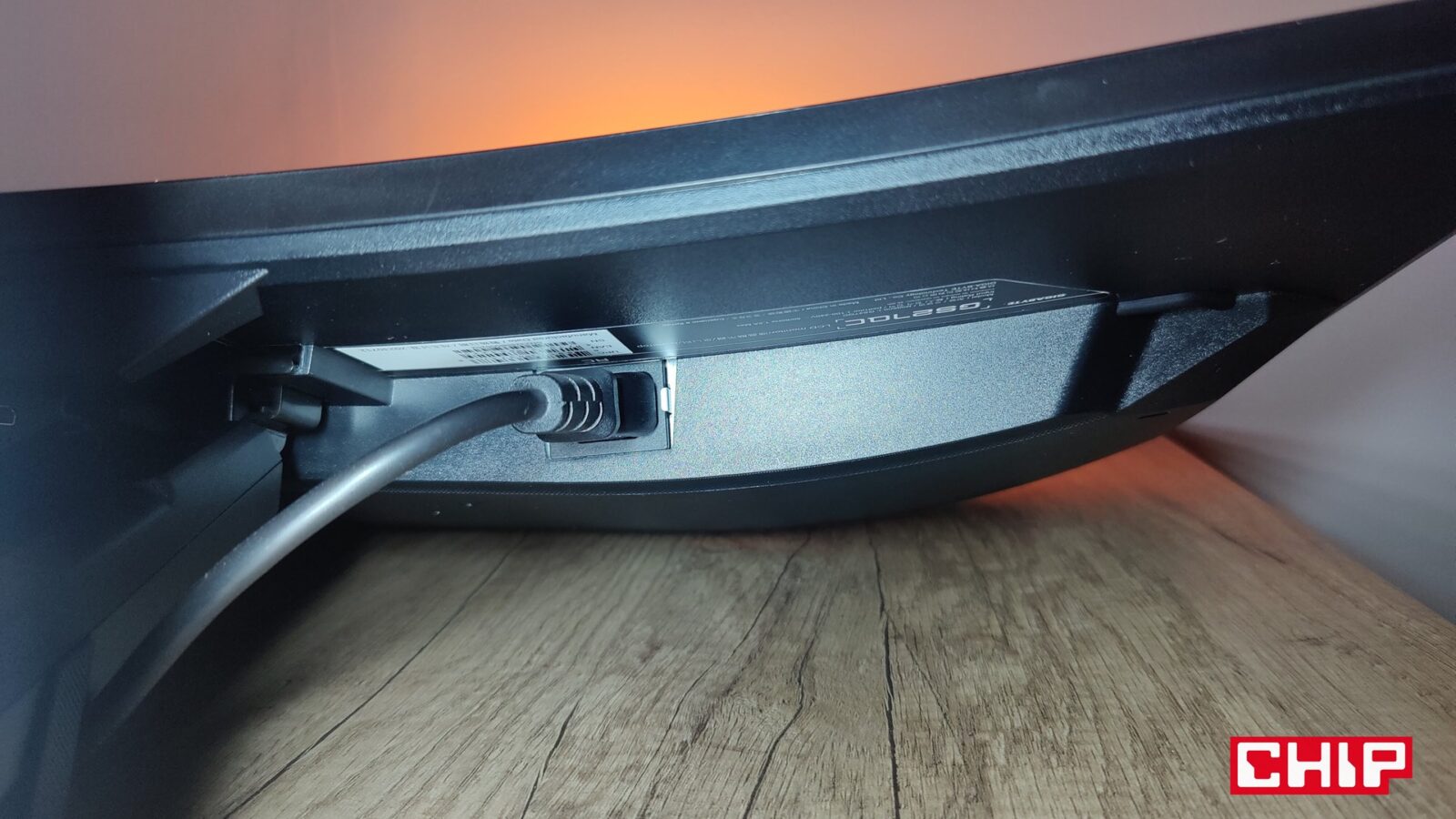Proces montażowy jest prosty. O ile nie macie uchwytu VESA 100×100, to czeka was konieczność połączenia podstawki o regulacji wychylenia od -5 do +20 stopni z wysięgnikiem “na śrubę” i następnie wciśnięcia wysięgnika prosto w odpowiednie miejsce na samym monitorze. Później wystarczy tylko podpiąć przewody (jeden zasilający oraz zależnie od potrzeby dwa HDMI 2.0, jeden DisplayPort 1.4, jeden jack 3,5 mm) i voila – możecie cieszyć się nowym monitorem.