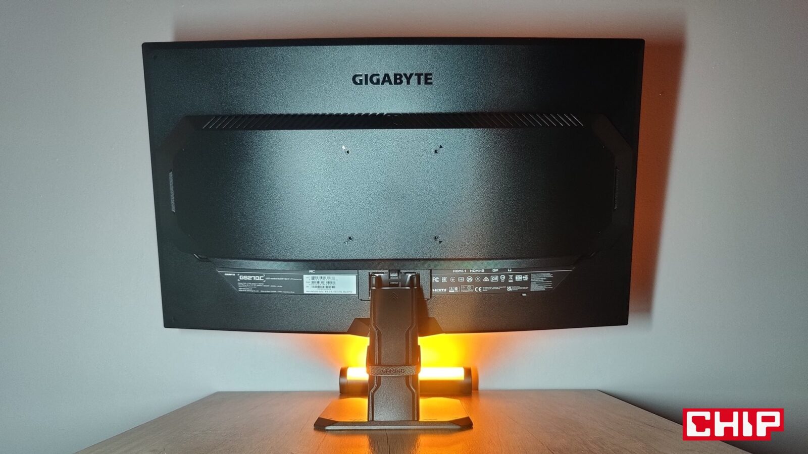 Samo wykonanie i wyposażenie monitora Gigabyte GS27QC jest dobre. Nic nie puka, nic nie trzeszczy i nic nie strzela, a jeśli planujecie eksponować nie tylko jego przedni panel o wymiarach 610 × 448 mm, z czego 596 × 335 mm stanowi wyświetlacz, to będzie mieli łatwy pogląd zarówno na montaż VESA, jak i 4-kierunkowy przycisk z diodą funkcyjną znajdziecie z kolei na środku dolnej krawędzi.