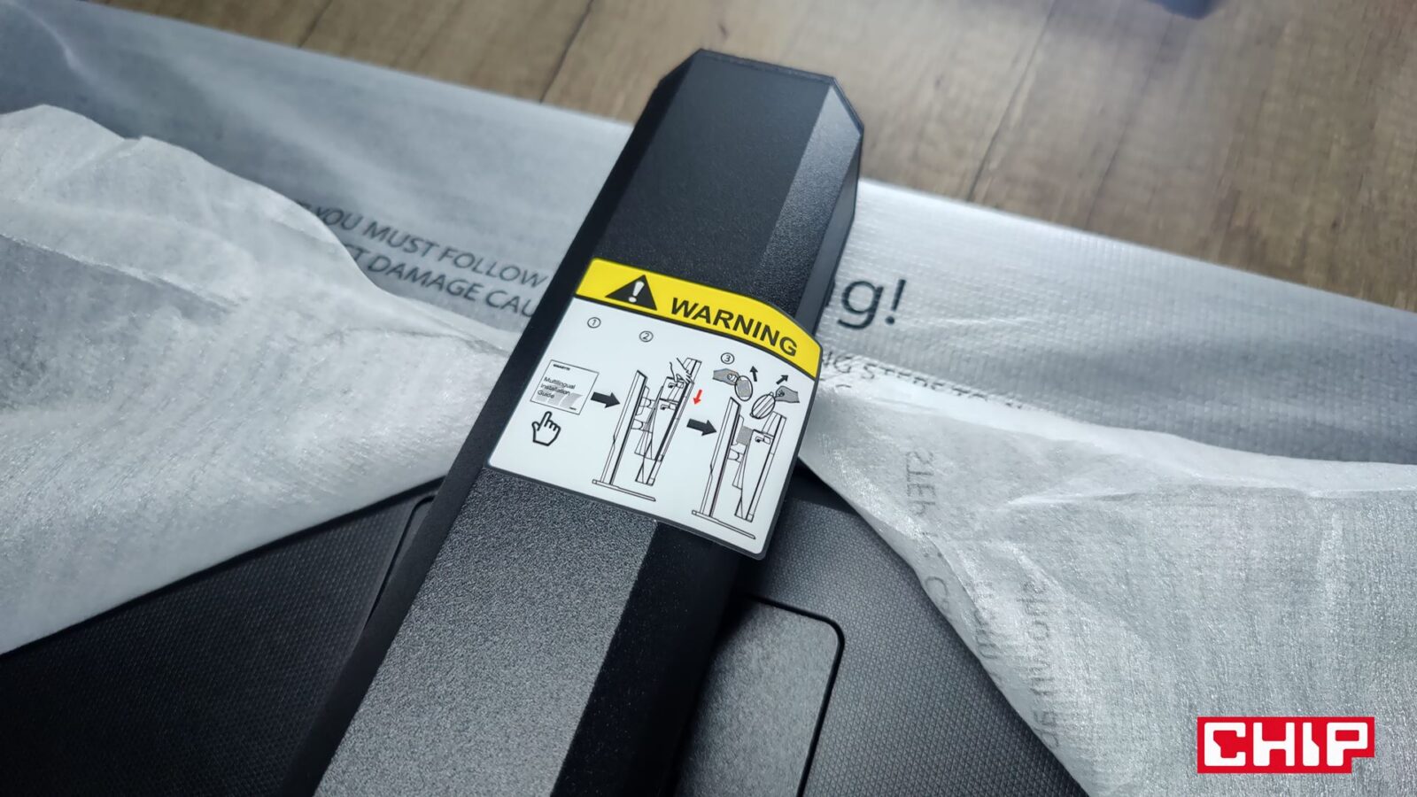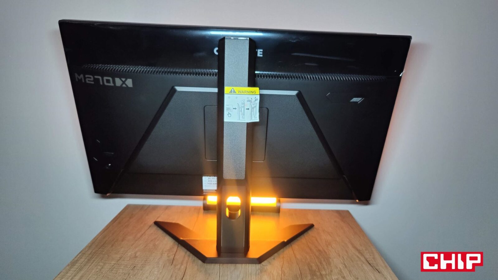Unboxing monitorów zwykle nie należy do specjalnie fascynujących przygód, ale Gigabyte M27Q X zdołał mnie zaskoczyć zarówno bogatym wyposażeniem, jak i zmyślną blokadą na mechanizm regulacji wysokości, która dba o bezpieczeństwo sprzętu w transporcie.