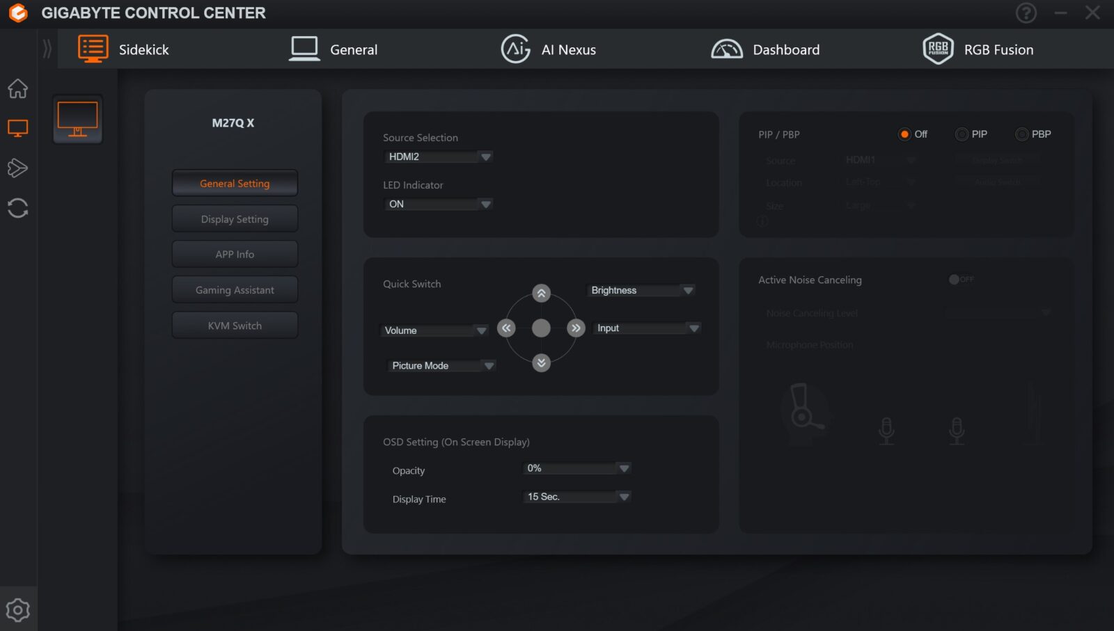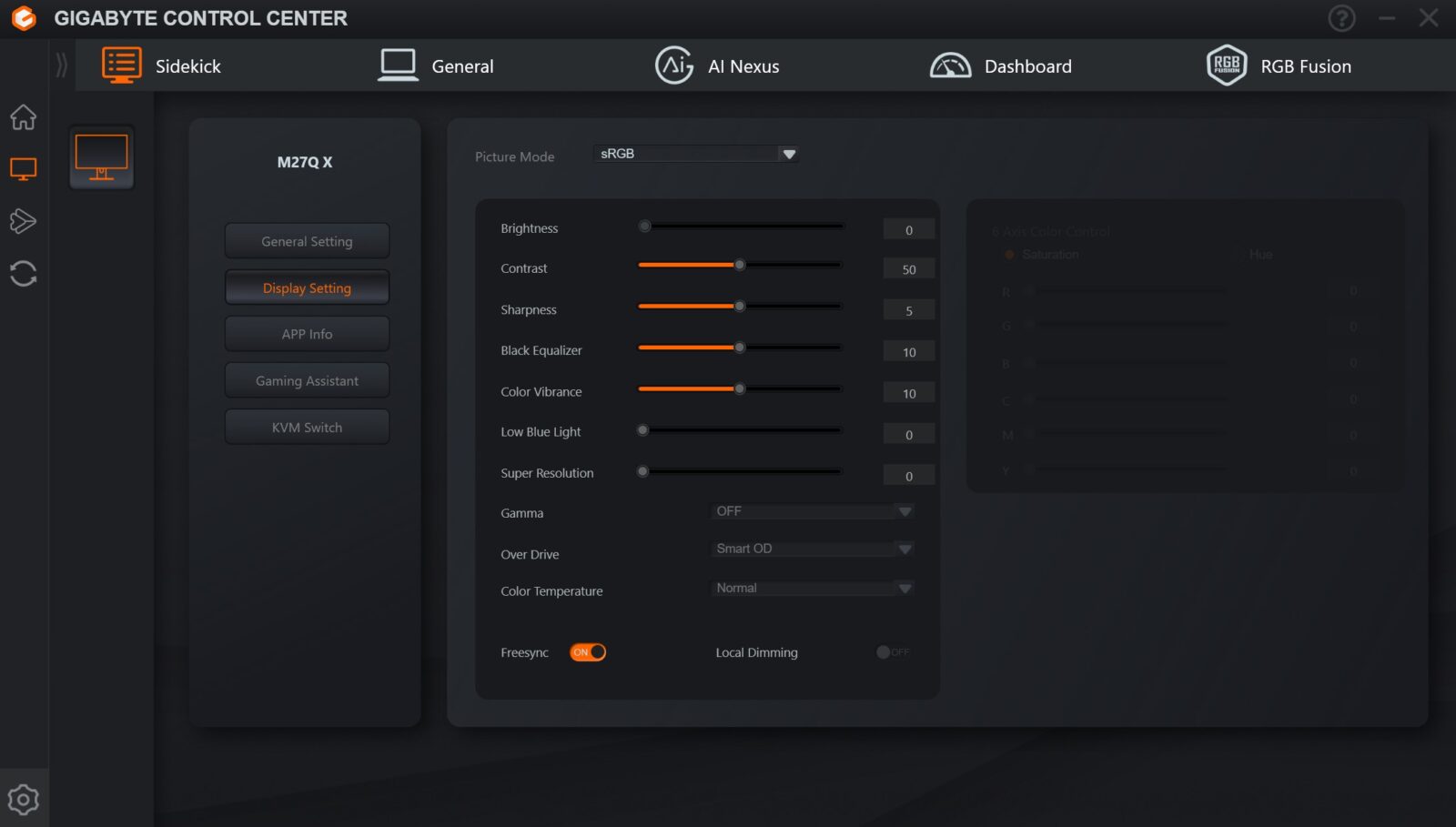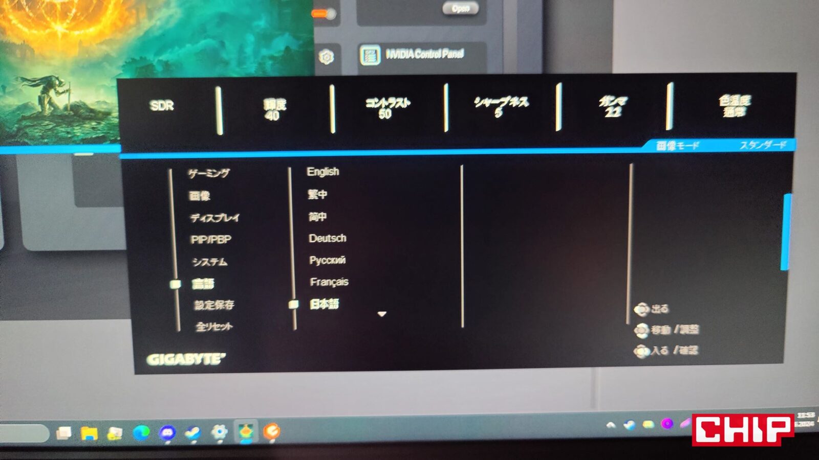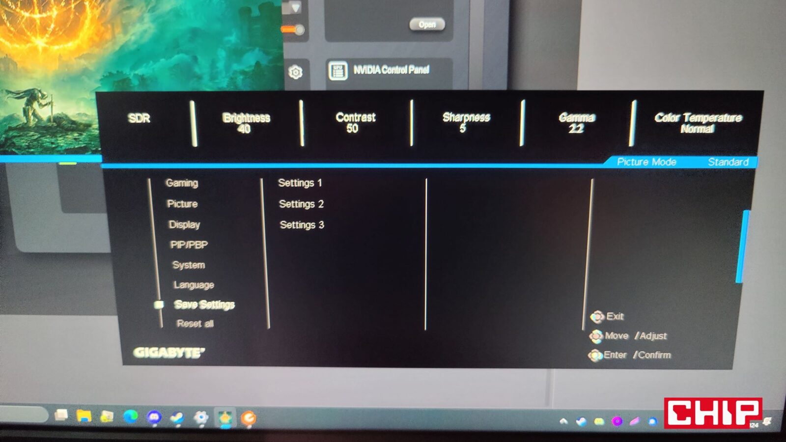- “Oszukanej” 10-bitowej głębi kolorów w formie połączenia 8-bitowej głębi z techniką Frame Rate Control (FRC), która w ogólnym rozrachunku poprawia głębię kolorów, ale nie tak bardzo, jak standardowa 10-bitowa matryca. Innymi słowy, nawet nie szukajcie opcji przełączenia Gigabyte M27Q X z 8-bitowej na 10-bitową głębię w Windowsie