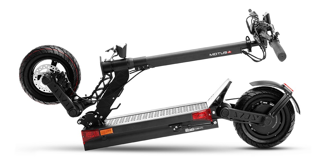 Dla poszukujących jeszcze wyższego komfortu i bezpieczeństwa marka Motus przygotowała również Motus PRO10 Urban, a więc hulajnogę z 720-Wh akumulatorem, który zasila silnik o mocy szczytowej rzędu 800 watów. Możecie więc być pewni, że mocy i zasięgu temu modelowi nie brakuje, ale najważniejsze w niej są kierunkowskazy, dwie dźwignie dla hamulców tarczowych na przodzie i tyle, dodatkowo oświetlony podest, mocny reflektor przedni, specjalnie wyprofilowane uchwyty na kierownicy oraz wahaczowe zawieszenie, które sprawi, że zapomnicie o nierównej kostce brukowej, a większe nierówności będą znacznie mniej odczuwalne.