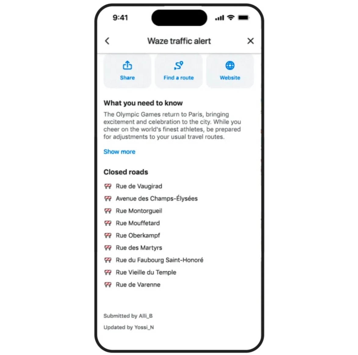 Na tym nie koniec, bo Waze pozwoli też udostępniać znajomym informacje o ruchu drogowym w czasie rzeczywistym. W przypadku zwiększonego ruchu lub zamknięcia dróg z powodu wydarzeń sportowych, parad itp., które dotyczą obszarów, przez które regularnie przejeżdżamy (lub które zapisaliśmy w aplikacji), otrzymamy powiadomienie ze szczegółami dotyczącymi danego wydarzenia i sytuacji na trasie. Będziemy mogli przesłać je znajomym i rodzinie, by dać im znać o przeszkodach, jeśli i oni mają zamiar jechać tą drogą.