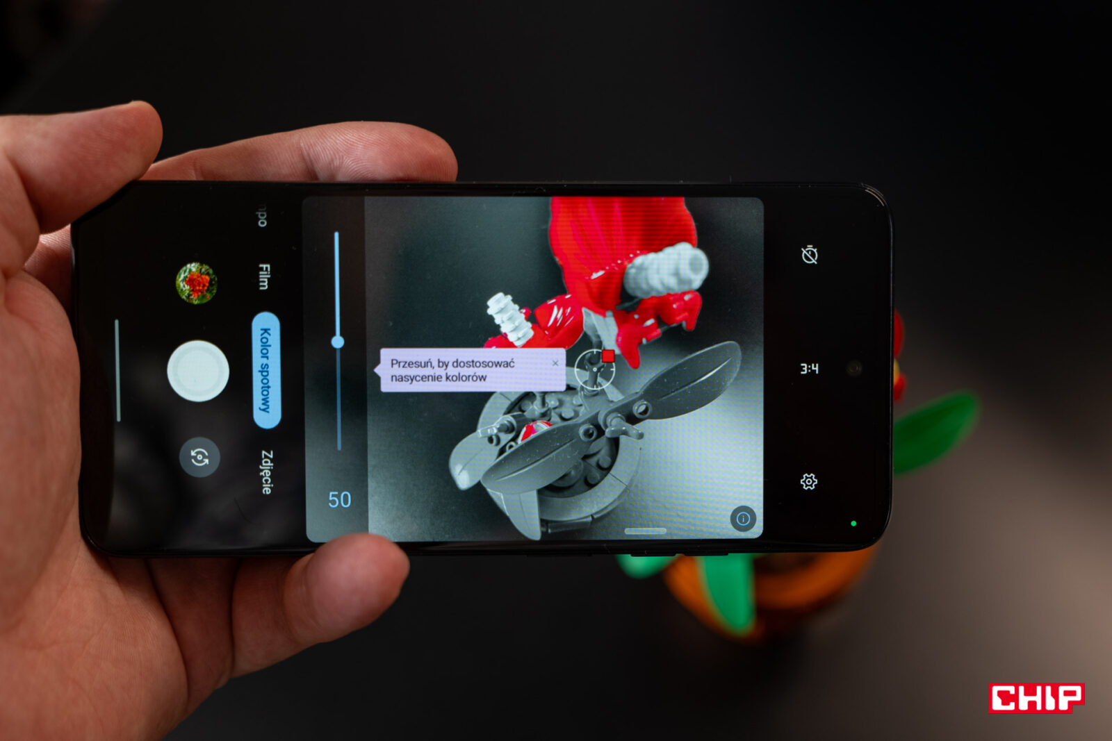 Fotograficznie smartfon prezentuje się… cóż, adekwatnie do ceny. Główna matryca to 50 megapikseli z jasną przesłoną f/1.8, a drugie oczko odpowiada za zbliżenia makro, dzięki czemu fotografowanie monet czy kwiatów będzie łatwiejsze. Z przodu znajdziemy 16-megapikselowy aparat. Motorola nie zapomniała też o tych, którzy chcą się bawić robieniem zdjęć i nagrywaniem filmów i udostępnia chociażby opcję koloru spotowego, gdzie reszta kadru poza wybranym przez nas kolorem staje się czarno-biała. Zdjęcia możecie zobaczyć sami.