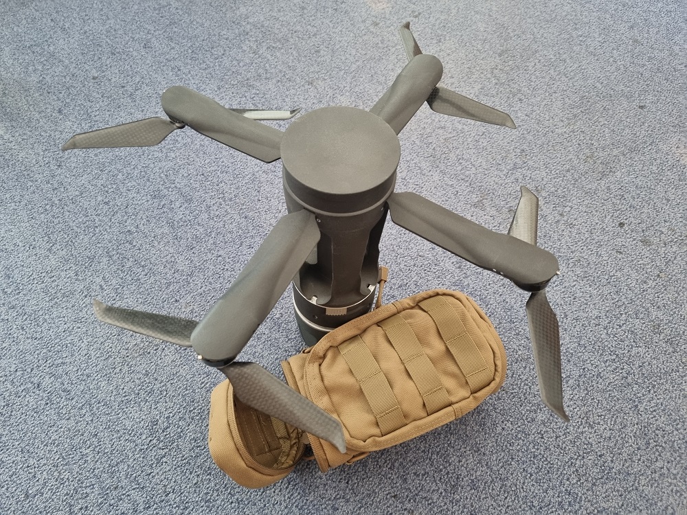 X-FRONTER nie jest całkowicie nowy, bo po raz pierwszy usłyszeliśmy o nim dwa lata temu, kiedy to doczekał się prezentacji w formie demonstratora technologii. Ten został przez ten czas rozwinięty do funkcjonalnej i najwyraźniej finalnej wersji, która przyjmuje postać cylindra o wielkości półlitrowej butelki o wadze około kilograma, mieszczącą się z łatwością w specjalnym etui. Jednak gabaryty oraz podwójna natura, to nie jedyne wyróżniki tego drona, bo tak się składa, że może on realizować również inne misje z racji możliwości sięgnięcia po różne ładunki, takie jak flary sygnalizacyjne, znaczniki podczerwieni czy wyrzutnie zasłon dymnych.