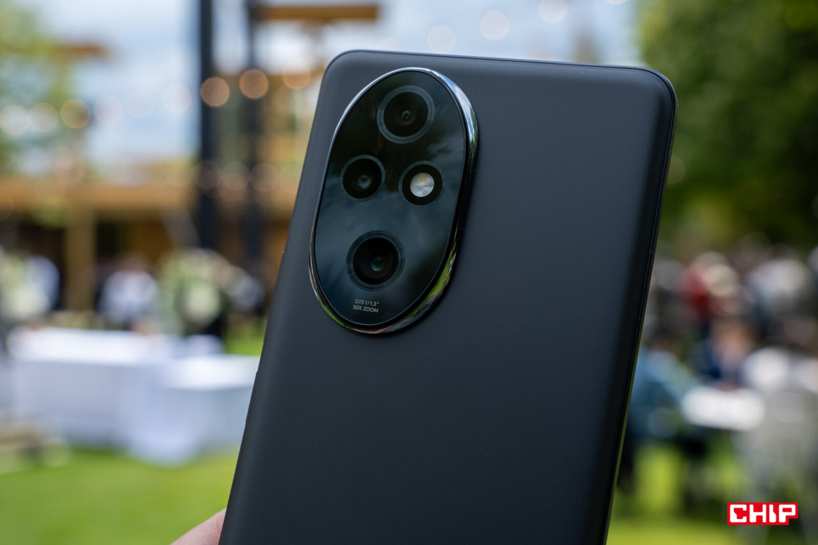 Honor 200 Pro to smartfon z matowym szkłem z tyłu, które przyozdobiono drobnym brokatem, a następnie przyciemniono. Samo rozwiązanie oceniam pozytywnie – jest ono bowiem na tyle subtelne, że telefon nie staje się błyskotką, za to zyskuje przyjemną w dotyku fakturę, a do tego niemal nie da się na nim zauważyć brudu i nie ma na nim rys. Szkoda, że nie udało się schować większej ilości napisów z pleców obudowy. Kontrowersje będzie też wzbudzać wyspa aparatów, która wygląda osobliwie. Okalająca ja metalowa rama jest łatwa do wyczyszczenia. Przed rozbiciem szkła chroniącego aparaty (też nie ma ono rys) wyspę chroni jeszcze jedna, cienka ramka metalu (też zebrała bęcki przy upadku). Z kolei obudowa ma ochronić wnętrze zgodnie ze standardem IP65. Dobrze, choć spodziewałbym się większej wodoodporności w tej klasie cenowej.