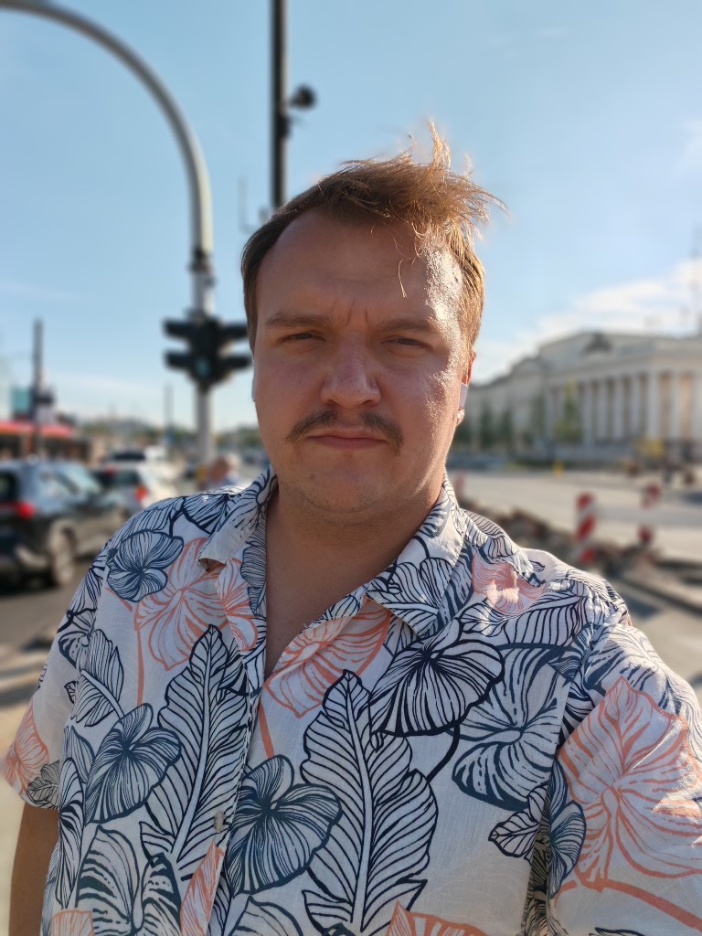 Wyjątkowo zajmę się nim najpierw, bo o aplikacji aparatu niespecjalnie jest co mówić, skoro wygląda jak milion innych aplikacji. Musicie wiedzieć, że tryb portretowy nie uczyni z waszego smartfonu aparatu z profesjonalną optyką, co widać po fałszywej głębi ostrości (np. nieostry akordeon lub inne obiekty przy całościowo ostrej twarzy) i nieco wygładzanych twarzach (wszystkie dodatki upiększające wyłączyłem).