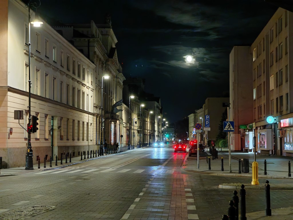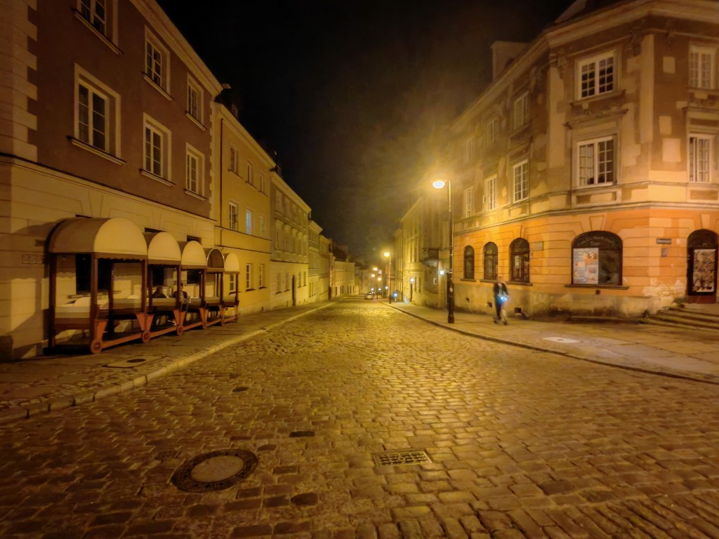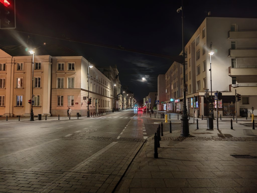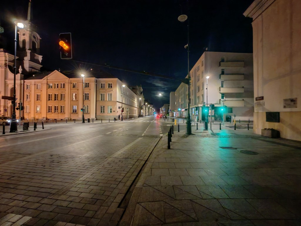 Jak sytuacja wygląda nocą? Z pewnością ujawniają się większe różnice w szczegółowości, a najlepszy pozostaje aparat główny, za nim portretowy, a sporo gorzej spisuje się ultraszerokokątny. Im dalej jest oświetlony obiekt, tym większych różnic możecie spodziewać się w kolorystyce między zdjęciami z trzech aparatów. Sporą różnicę dla każdego z aparatów robi zastosowanie trybu nocnego i jeśli tylko możecie, róbcie to, bo ilość szumów zmniejsza się co najmniej o połowę. Zdjęcia najczęściej są dobrze doświetlone i wyglądają przyjemnie dla oka, bez nadmiernego rozjaśniania czy przekłamywania barw. Ich poziom w tej klasie nikogo nie powinien rozczarować. Tryb nocny to zdecydowany bohater, zwłaszcza dla aparatu ultraszerokokątnego, bo to dzięki niemu większość zdjęć staje się używalna.
