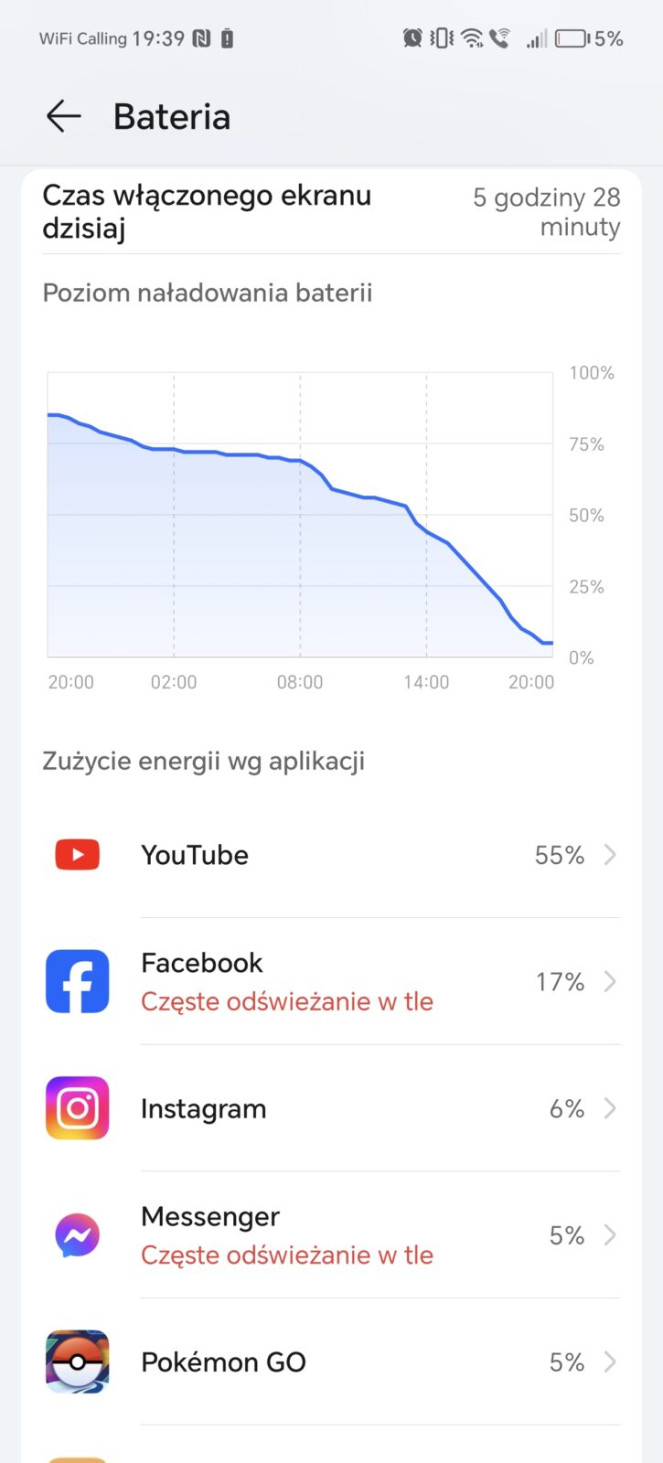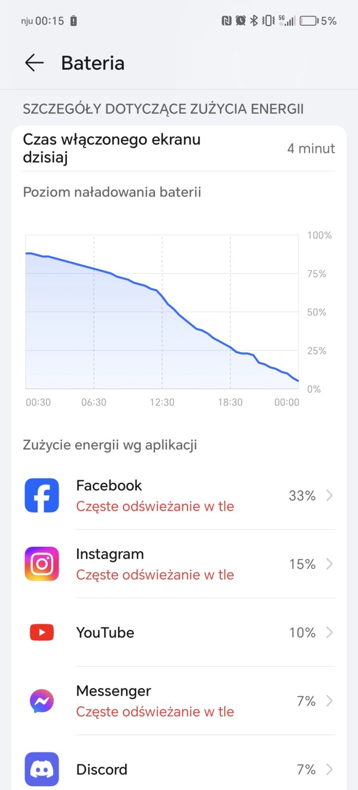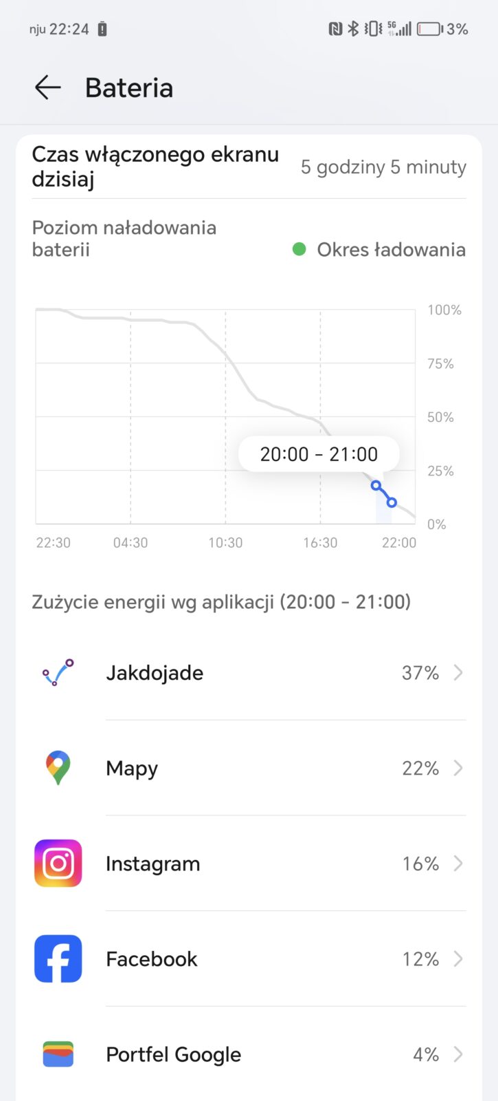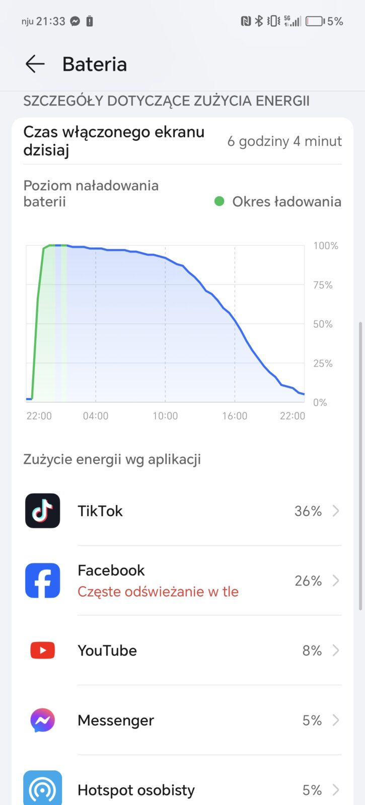 Honor 200 Pro mieści w smukłej obudowie akumulator krzemowo-węglowy o pojemności 5200 mAh. To odrobinę więcej niż większość flagowej konkurencji w tym roku i trochę mniej niż realme GT 6. Jak już sugerowałem w akapicie o wydajności, producent lubi neutralizować aktywne procesy. Jeśli nie jest to dla was problem, to szykujcie się na coś pomiędzy 5,5 a nawet 8 godzinami czasu pracy na jednym ładowaniu. Drugi rezultat osiągnąłem przy Wi-Fi i głównie oglądając filmy, ale na co dzień bez problemu zostawałem z 25-30% baterii. Możecie być spokojni – osiągniecie dzień, a nawet dwa dni pracy.