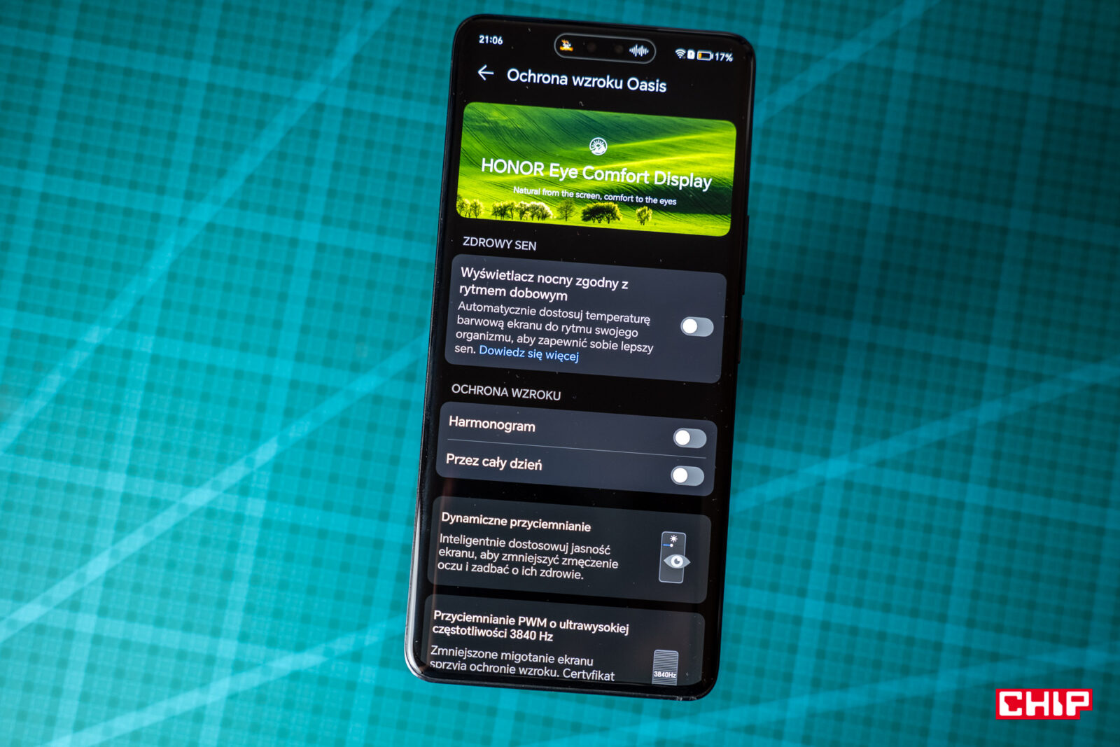 A jak spisuje się sam ekran? Cóż, Honor 200 Pro nie zrewolucjonizuje rynku, nawet pomimo tego, że oprogramowaniem chroniącym wzrok przed niebieskim światłem próbuje stworzyć różnicę między konkurencją. To całkiem pokaźne narzędzie, które zmienia też częstotliwość odświeżania jasności na wyższą. Dziwnie spisuje się za to funkcja ulepszania wideo, która dodaje materiałom dziwnie wyostrzonych krawędzi, jak z rozwiązań poprawiających widoczność dla osób z zaburzeniami wzroku, zamiast cyfrowego podnoszenia rozdzielczości.