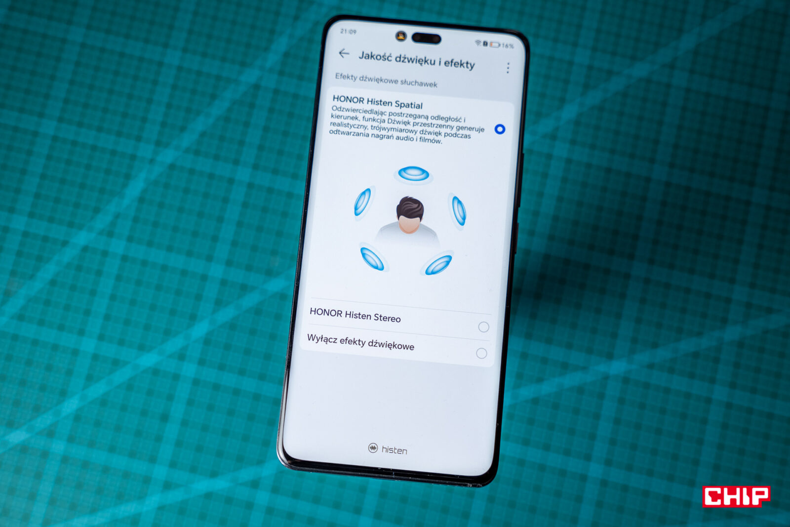 Honor 200 Pro stawia na podobny do innych system głośników stereo z większym wyprowadzającym dźwięk z dolnej maskownicy oraz z górnym, który kryje się pod warstwą siatki w ramce nad ekranem. Nie spersonalizujemy ich brzmienia, za to możemy dopasować to, które pochodzi z podłączonych do telefonu słuchawek. Gdy już wsuniemy je do uszu, uzyskamy dostęp do opcji dźwięku przestrzennego (trochę to działa, ale kompromis w jakości jest zbyt duży) oraz do “stylu dźwięku”, gdzie czeka na was kilka predefiniowanych ustawień (muzyka, film, gra oraz przełączający się tryb inteligentny), a także korektor graficzny. Efekt tych ustawień są odczuwalne w naszych uszach, więc jeśli nie wiecie, co mielibyście osiągnąć, korzystajcie z domyślnych ustawień.