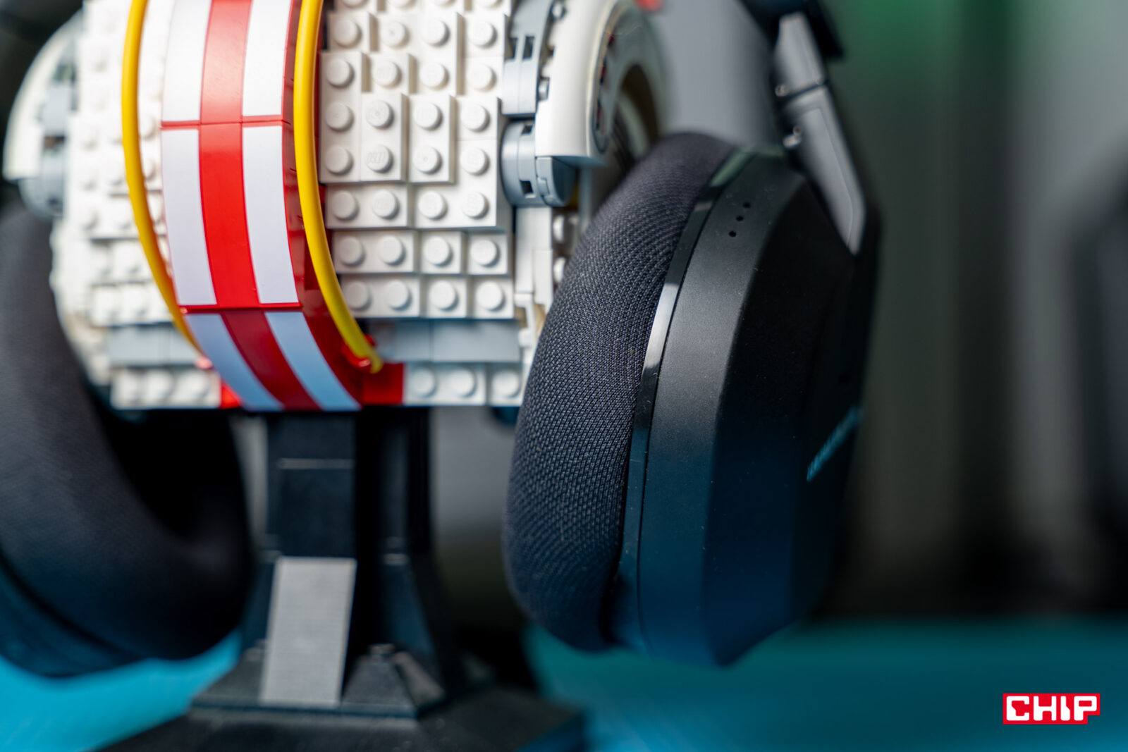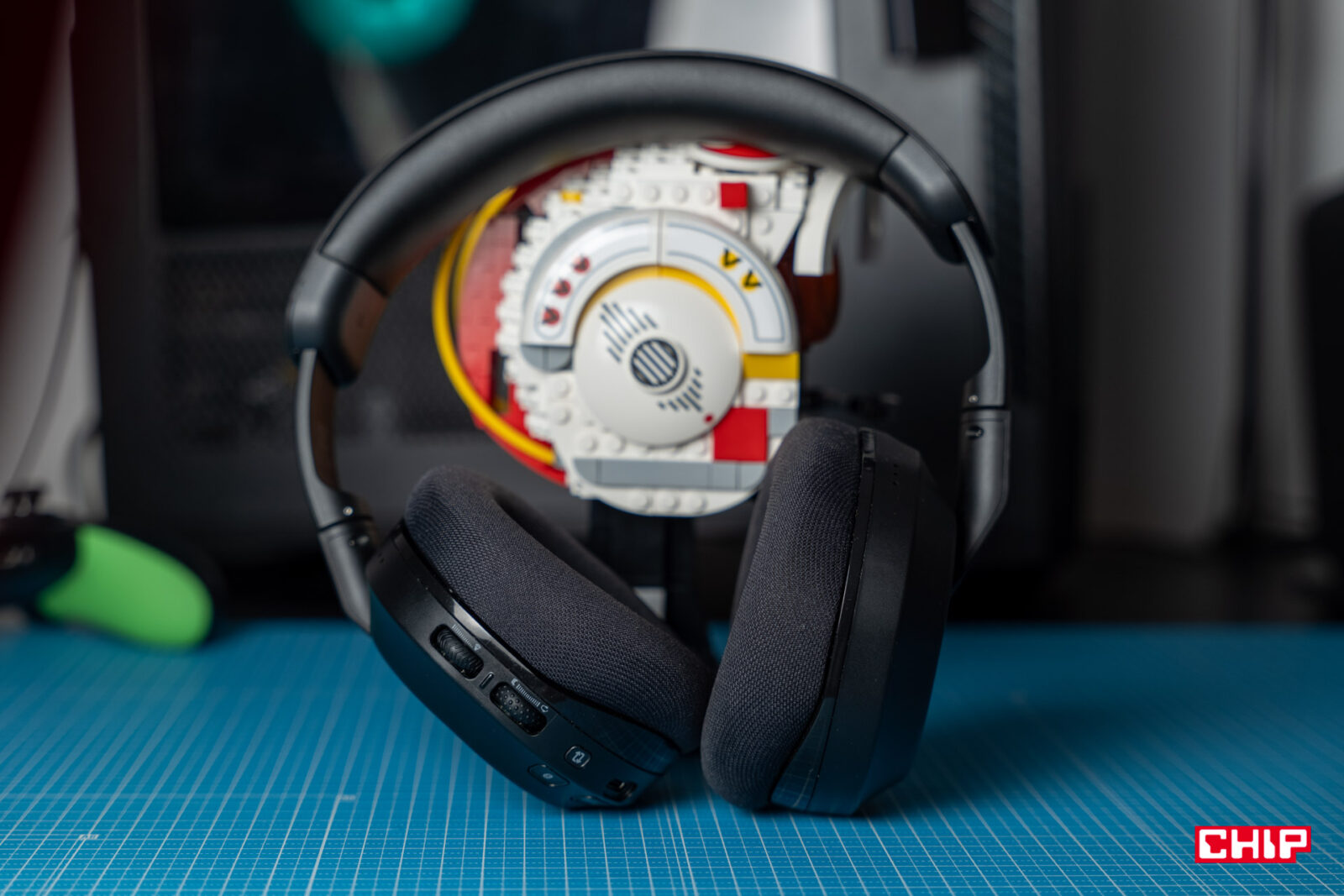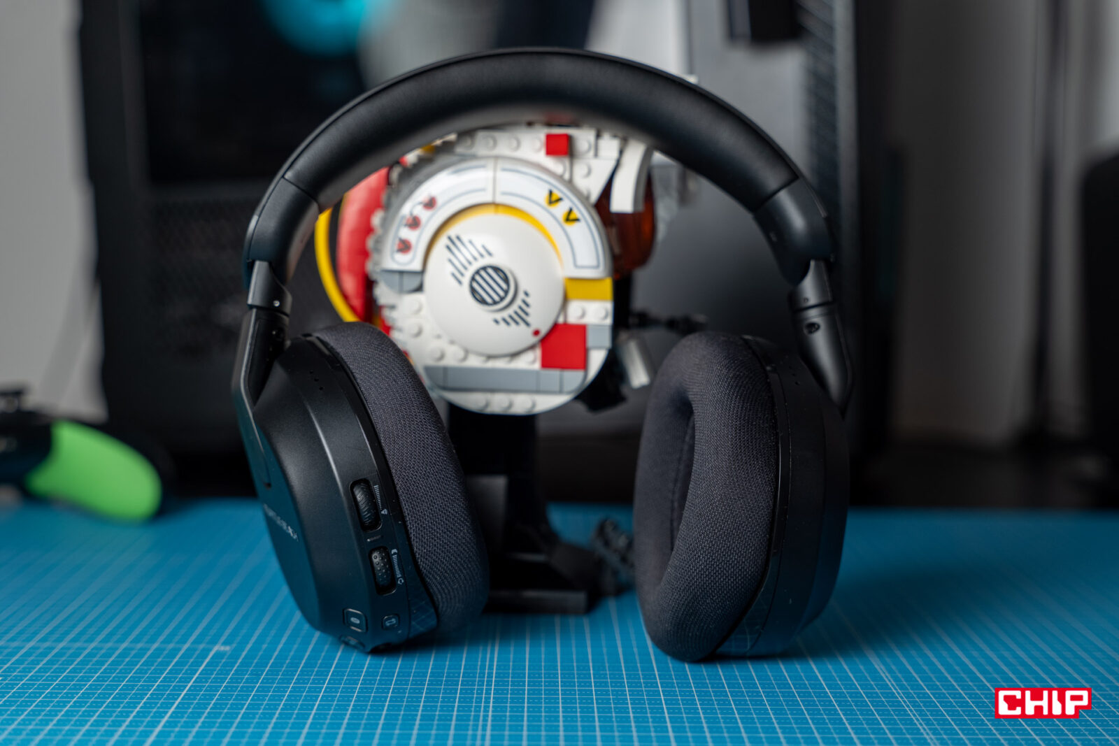 Plastik dominuje w konstrukcji skąpanej w czerni. Jedynie logotypy firmy na nausznikach oraz dioda dookoła włącznika wyróżniają się kolorystycznie. Producent postawił na matowe wykończenie, które nie zbiera aż tak mocno brudu czy rys jak błyszczący plastik, który gości przy poduszkach. Wszystkie przyciski oraz pokrętła umieszczono na lewej słuchawce. Mimo tego nie odczułem dysproporcji w wadze między dwiema częściami headsetu. O ile przyciski dość przyjemnie klikają, tak pokrętła poruszają się skokowo i nie każda aplikacja jest na to gotowa: w przypadku połączenia Bluetooth głośność regulowałem o dwa stopnie.