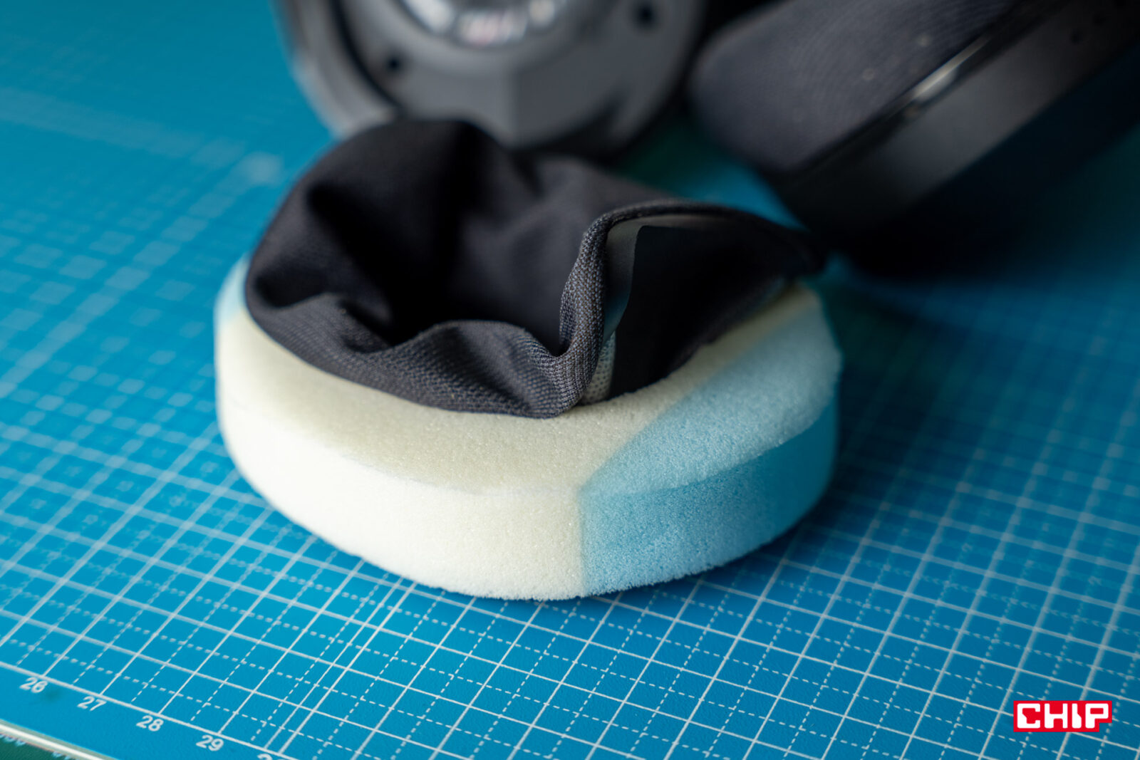 Z drugiej strony, otrzymujemy dzięki temu wgląd w jakość zastosowanych materiałów, a ta jest… typowa. Gąbka wygląda dość tanio, podobnie jak membrana, ale wykonano je z miękkich materiałów, które nie przyczyniają się do pocenia ucha, a do tego mają odpowiednią sprężystość. Nie ma w niej materiałów chłodzących i przy dłuższych sesjach w ciepłe dni słuchawki okazjonalnie zdejmowałem. Pozytywem jest regulacja z przyjemnym skokiem między ustawieniami, stawiająca jednak na tyle duży opór, by przypadkiem nie zmienić ustawienia słuchawek. Warstwa pianki w poduszce nad głową jest niewielka, ale – przynajmniej na początku życia słuchawek – wystarczająca. Tu jednak nie ma szans na wymianę, gdyż jest to integralna część pałąka.