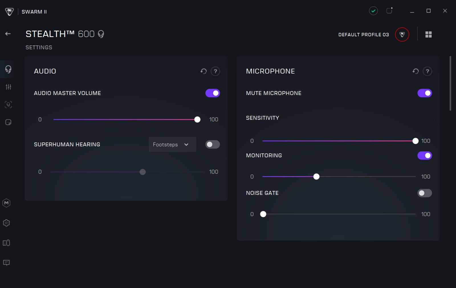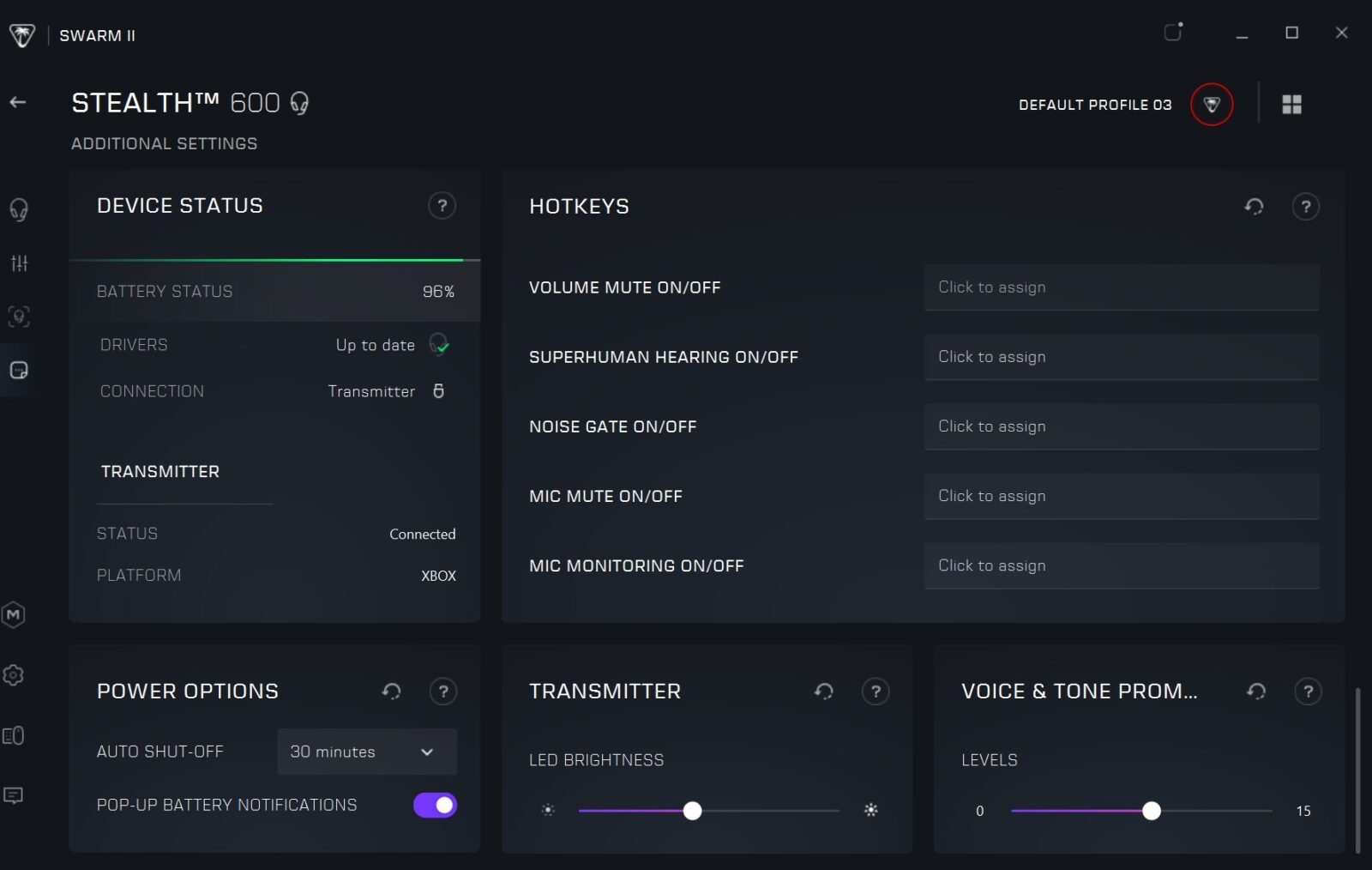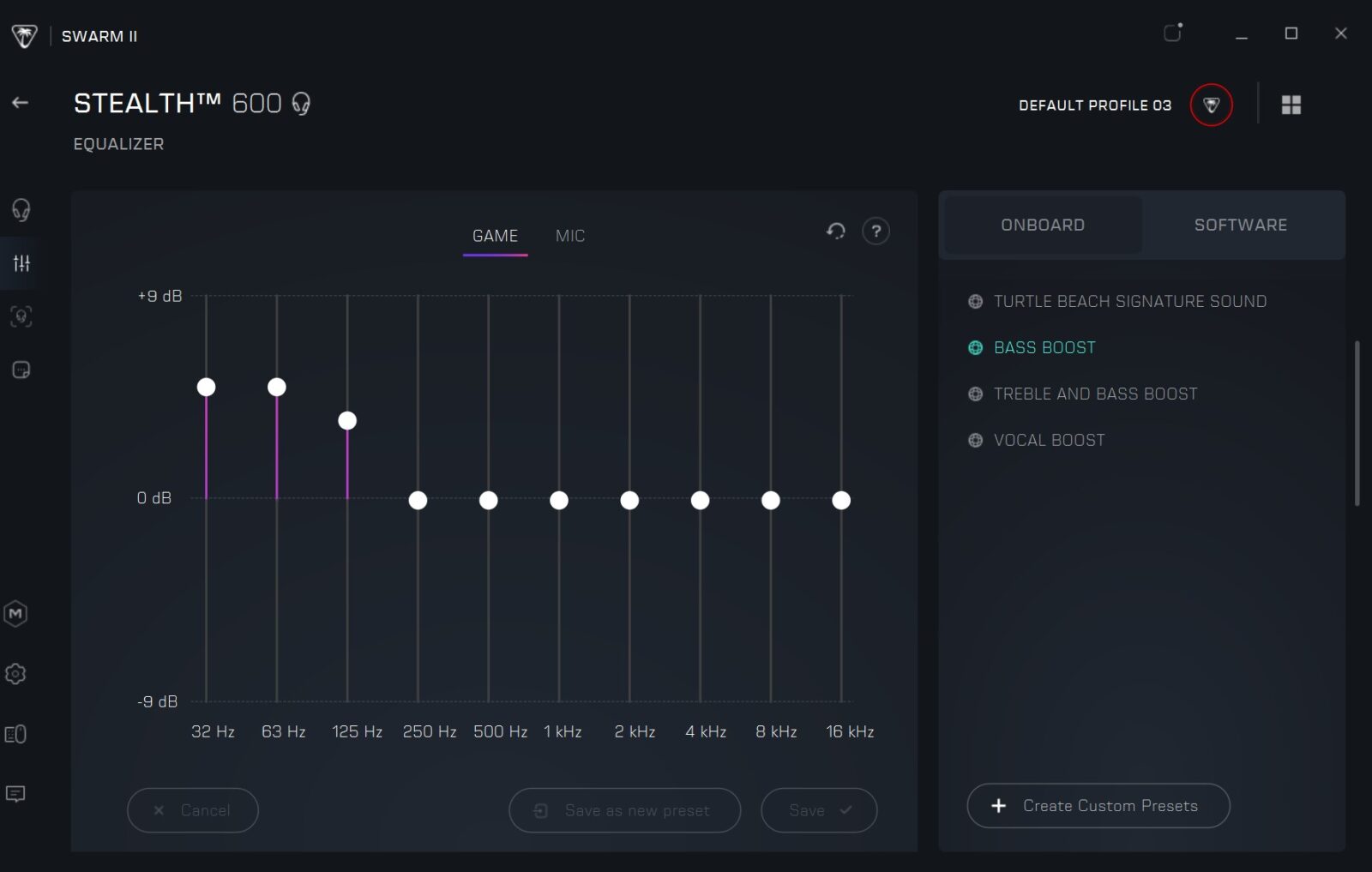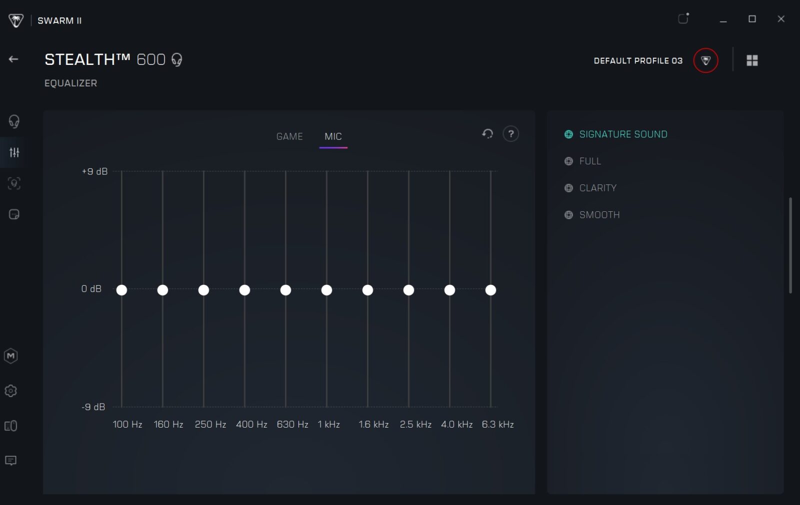 Problem z nagraniami zarejestrowanymi przez 2,4 GHz był taki, że mikrofon słuchawek Stealth 600 czasem nie wyłapuje małych fragmentów wypowiedzi, a przynajmniej tak mi się wydawało. Sama jakość dźwięku jest akceptowalna – słychać, że dochodzi tu do kompresji i aktywują się filtry dolno- oraz górnoprzepustowe, by sybilanty nie wbijały się w uszy naszych rozmówców. Nasza wypowiedź, gdy nie dochodzi do błędów przesyłania, jest zrozumiała dla drugiej strony. Źródłem problemów Turtle Beach Stealth 600 nie był pierwotnie oskarżany przeze mnie transmiter, ale ustawienia w aplikacji Swarm II.