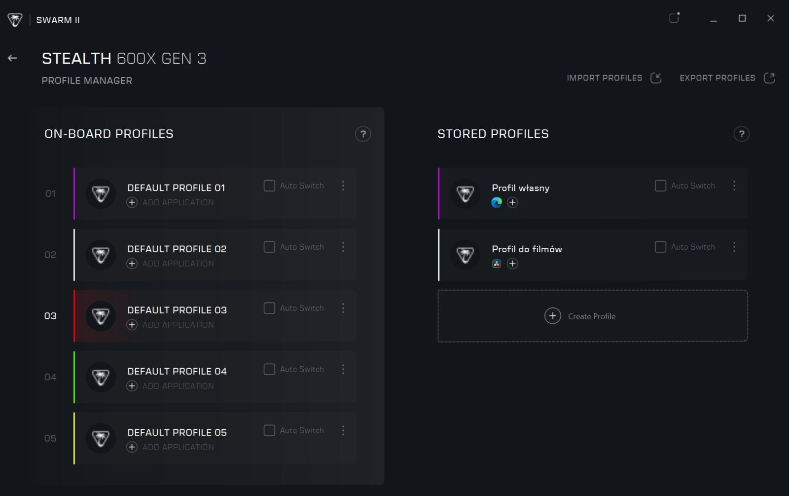 W przypadku słuchawek dla graczy aplikacja wydaje się obowiązkiem i nie inaczej jest w przypadku Turtle Beach Stealth 600. Aplikację Turtle Beach Swarm II znajdziemy zarówno na komputery z systemem Windows 10 i 11, jak i na urządzenia mobilne z iOS i Androidem. To rozwiązanie z gatunku tych, w których dzieje się sporo i niekoniecznie producentowi zależy na tym, by przeprowadzić nas łatwo przez szereg ustawień.