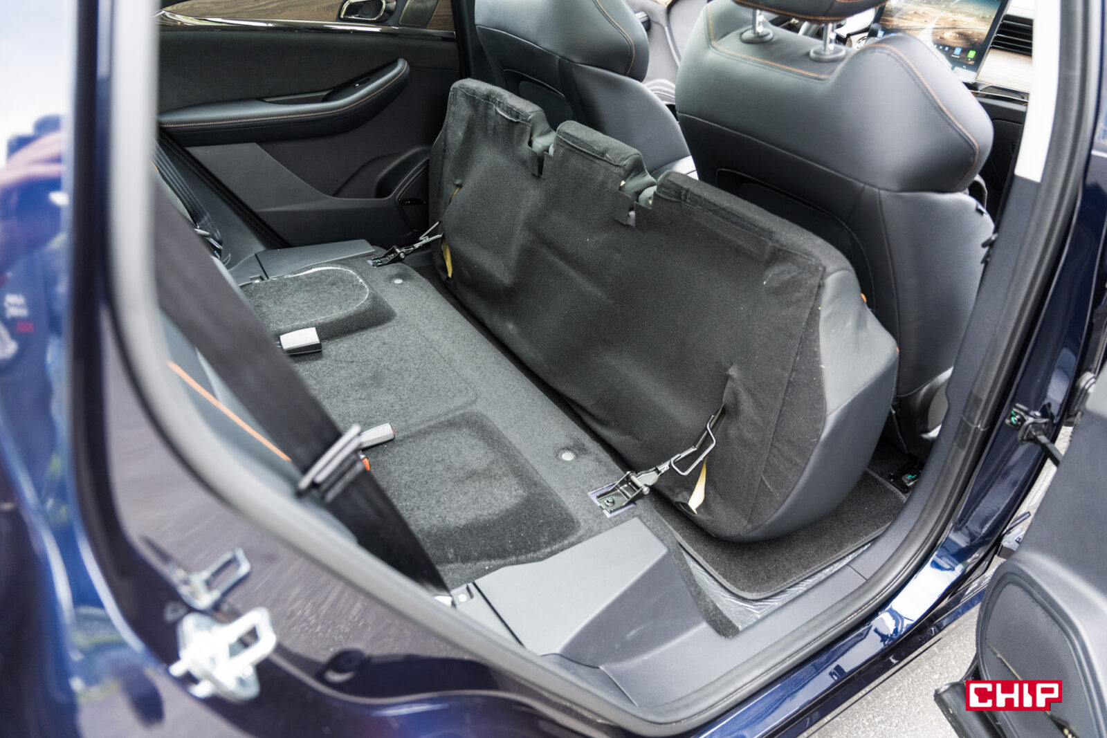 Taki zabieg pozwala wykorzystać miejsce tylnej kanapy do przewozu rzeczy oraz złożenia oparcia na płasko. Uspokajam, siedzisko po przymocowaniu trzyma się bez zastrzeżeń, nie przemieszcza się na boki, choć jest przymocowane trochę jakby miało zaraz odlecieć.