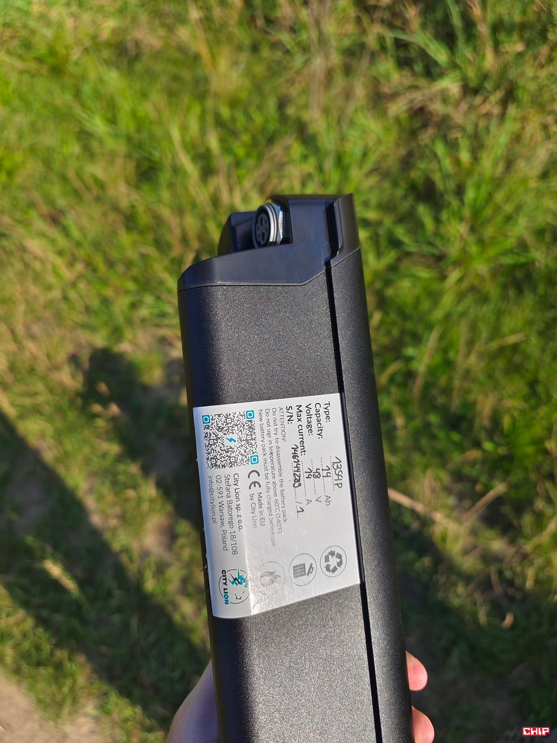 City Lion nie miało gotowej baterii do tego modelu roweru eletrycznego. Wysłałem im więc oryginał i znaleźli oni identyczną obudowę, do której ogniwa o pojemności 14 Ah. No, może prawie identyczną, bowiem różniło się wejście na zasilacz. Ale to też nie było problemem – firma przysłała pasującą ładowarkę. Mamy więc w tej samej obudowie o 40% większa pojemność baterii.