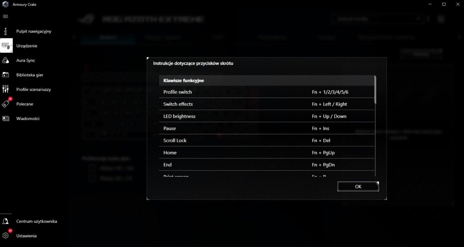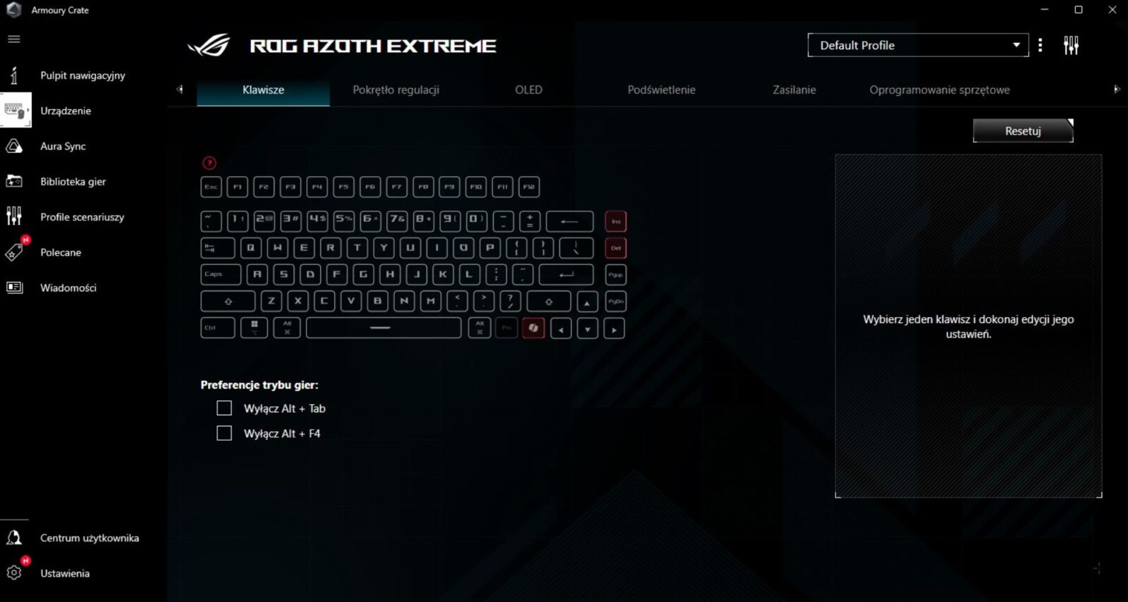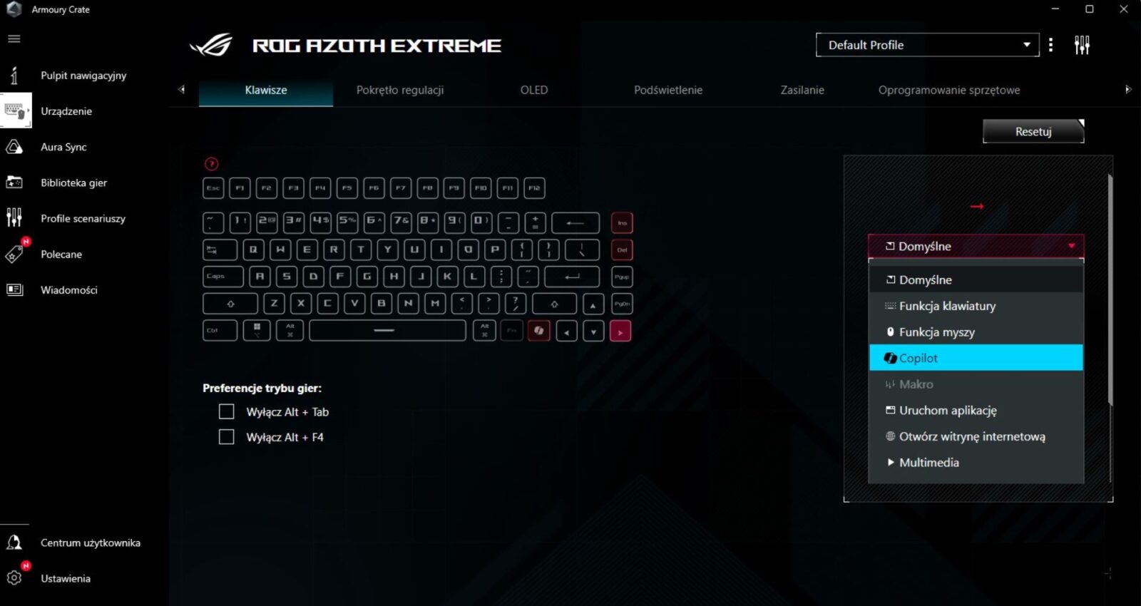 Funkcje Asus ROG Azoth Extreme i aplikacja
