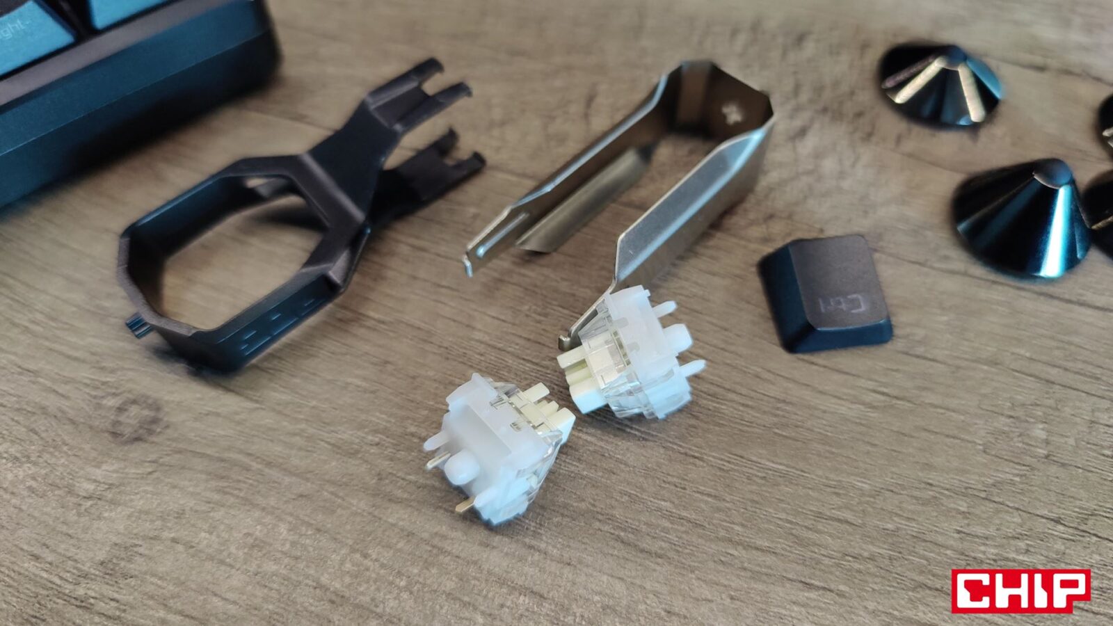 Pozostałe elementy zestawu ROG Azoth Extreme są raczej serwisowe, ale trzeba przyznać, że Asus przynajmniej postarał się, żeby w razie awarii jakiegoś przełącznika, kupujący mógł go wymienić bez potrzeby latania po sklepach. To dobra wieść, bo przecież mówimy tutaj o klawiaturze z najwyższej półki.