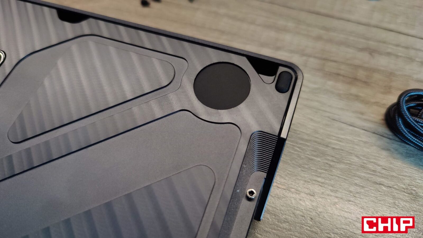 Chociaż wyświetlacz jest dotykowy, to najwięcej co do zarządzania komputerem ma do powiedzenia znajdujące się po jego prawej stronie trójstopniowe pokrętło. To właśnie pokrętło można wcisnąć z boku, aby zmienić aktualny tryb (regulacji podświetlenia, poziomu głośności, manipulacji playlistą) oraz pociągnąć w górę lub w dół, aby wchodzić w interakcję z aktualnym trybem. O ile taka forma bardzo przypadła mi do gustu, tak nie jesteśmy na nią skazani, bo większość tych funkcji znajduje się pod kombinacjami klawiszy, ale najgorsze jest to, że boczny przycisk zmiany trybu nie jest dobrze osadzony w luce i “gibie się” na boki.