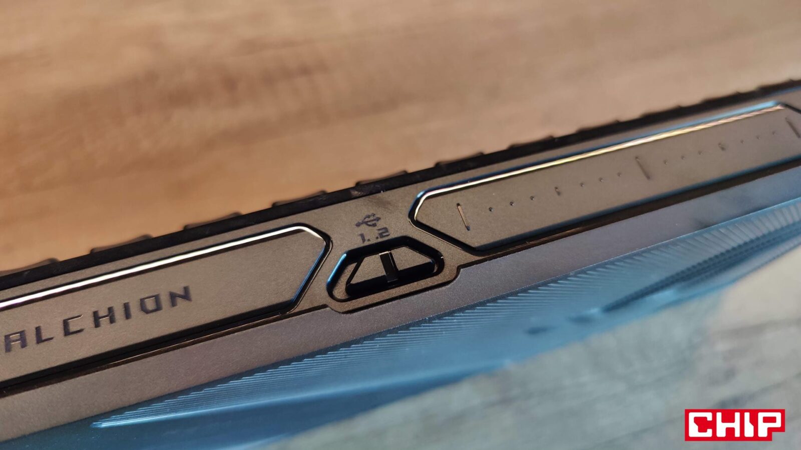 Na co dzień znacznie ciekawiej spisuje się jednak to, co znajdziecie po lewej stronie klawiatury. W górnym rogu ASUS wprowadził podświetlanych na biało symbolów, które określają aktualną funkcję dotykowego paska po lewej stronie od centralnego przełącznika. Między tymi funkcjami przełączamy się kiwającym się nieco na boki srebrnym przyciskiem z logo producenta, co zapewnia nam nic innego, jak multimedialne centrum dowodzenia. To wykrywa zarówno przejazd palcem w prawo, jak i w lewo oraz pojedyncze i podwójne kliknięcia, aby umożliwiać m.in. regulację poziomu głośności, manipulację podświetleniem lub playlistą. Czy to dobry dodatek? Ewidentnie tak i tyczy się to nawet jego formy, bo np. pasek na boku, mógłby być narażony na przypadkowe dotknięcia.