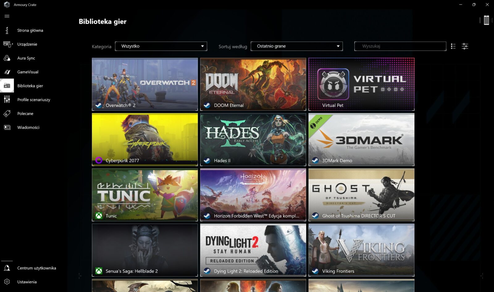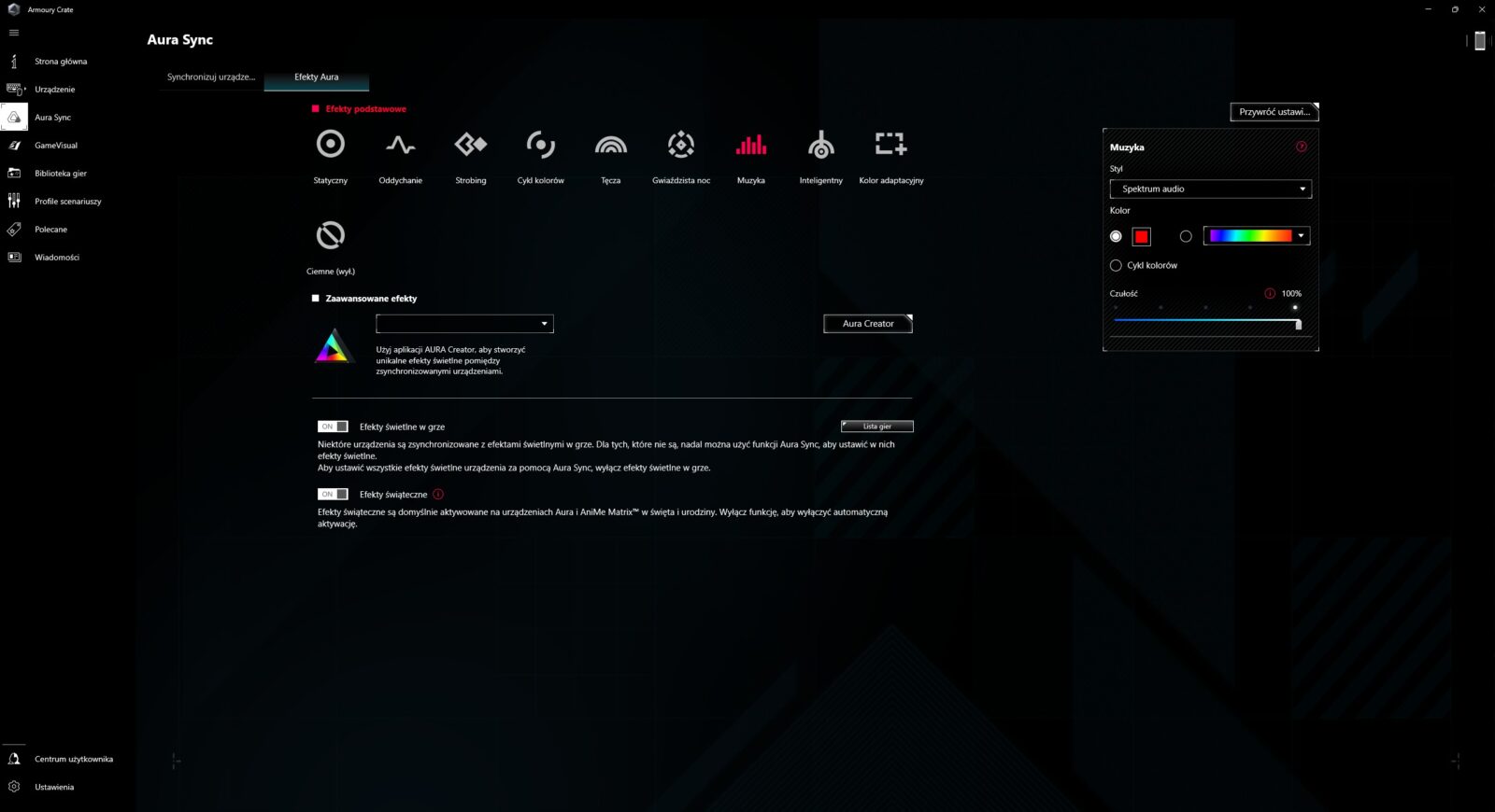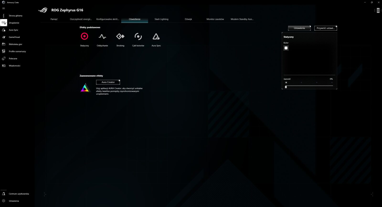 Czym jeszcze wyróżnia się ASUS ROG Zephyrus G16 (2024) GA605? Zadając sobie to pytanie bez patrzenia na zapewnienia producenta, w moich myślach od razu pojawia się system głośników (aż 6), które wypadają świetnie zarówno w kwestii brzmienia, jak i poziomu głośności. Tak przynajmniej było przez pierwsze kilka dni, bo aktualizacja producenta sprawiła, że głośniki z dnia na dzień zaczęły brzmieć tak, jak zestaw głośników z najtańszego monitora. Jeśli więc odniesiecie takie wrażenie z tym konkretnym modelem, to najpewniej powinniście się skontaktować z producentem. Na co dzień fenomenalnie spisuje się też obsługa Windows Hello, szybkie ładowanie akumulatora do stu procent w 90 minut (do 80% w godzinę) podczas kontynuowania pracy oraz w 90% samo oprogramowanie, które możecie podejrzeć poniżej.