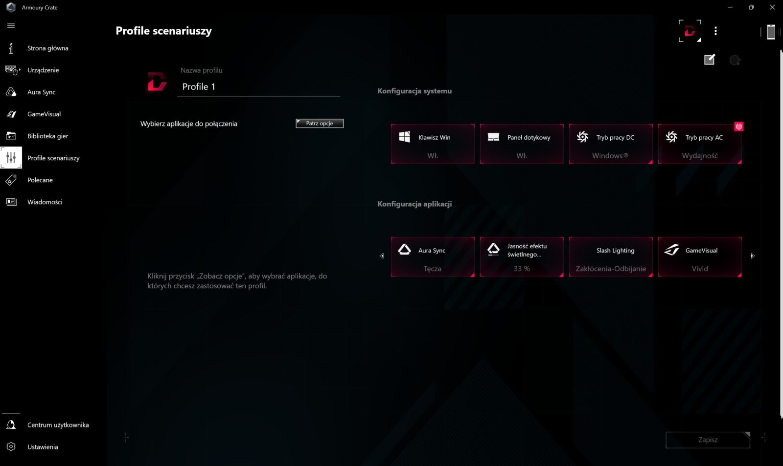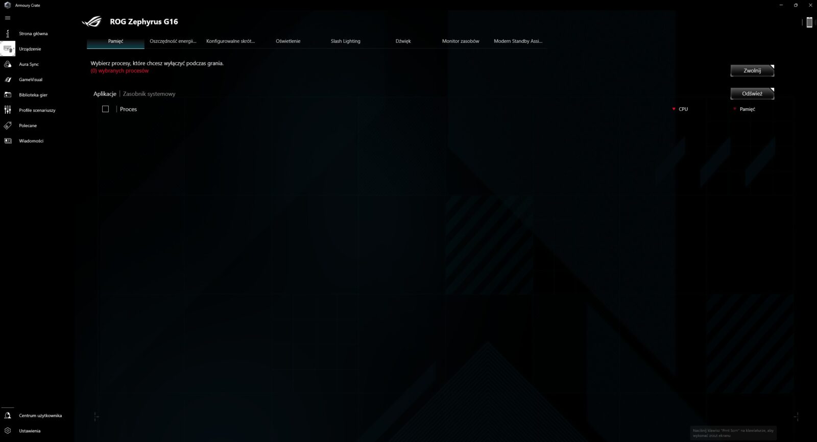 Chociaż ASUS nigdy nie zachwycał mnie jakością swoich aplikacji, tak Armoury Crate w roli centrum dowodzenia spisuje się dobrze zarówno w procedurze testowej, jak i w codziennym użytkowaniu nawet z punktu widzenia niedzielnego gracza, co widać np. w powiadomieniach o tym, że jakaś aplikacja wykorzystuje dGPU podczas pracy na akumulatorze. Okazjonalnie jednak zdarzają się problemy z oprogramowaniem, co możecie obejrzeć poniżej. Wtedy jednak reset laptopa rozwiązuje wszelkie problemy.