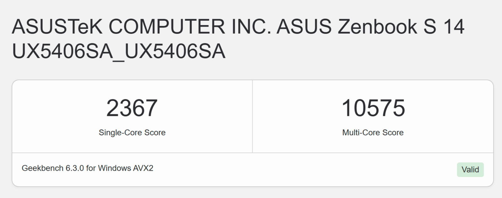 - Geekbench 6 CPU: 10575 pkt Multi Core, 2367 pkt Single Core
