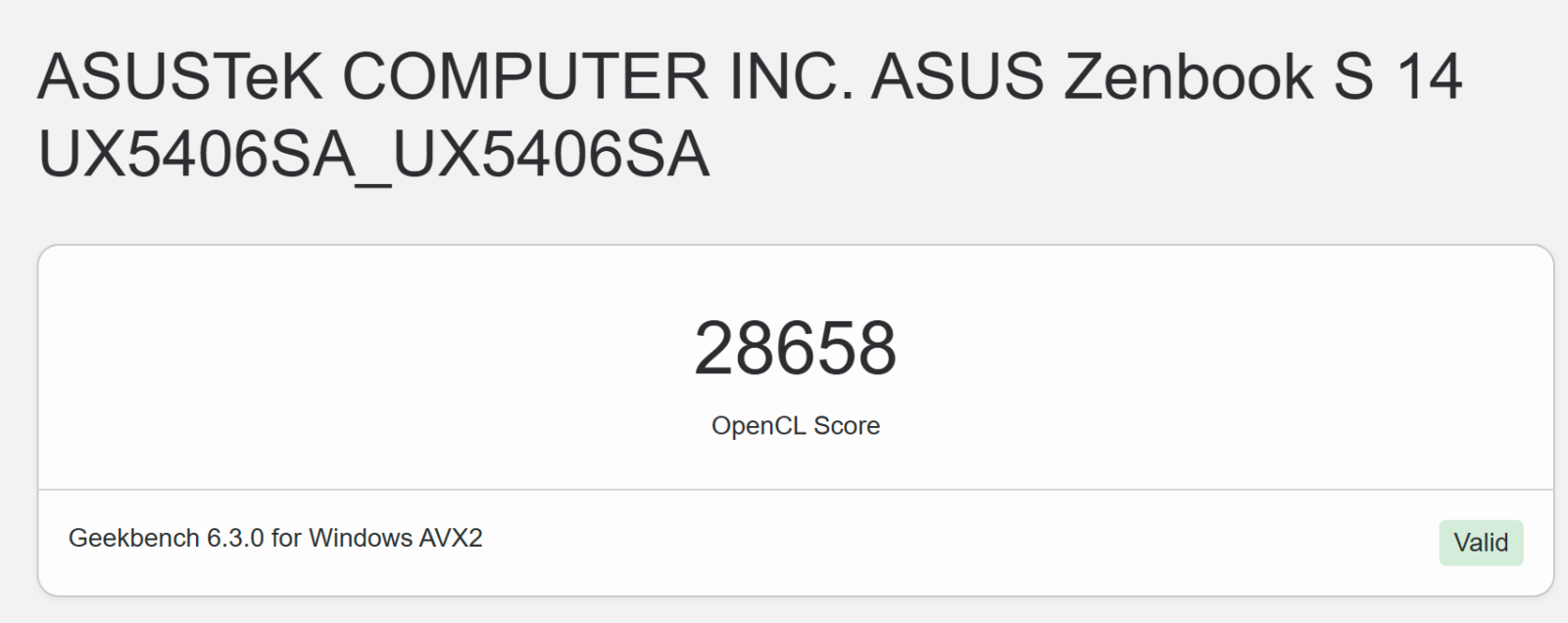 - Geekbench 6 GPU: 28658 OpenCL / test Vulcan zakończony błędem