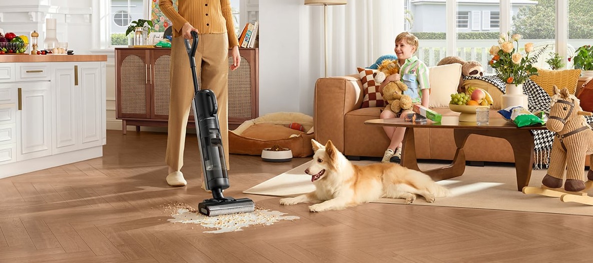 H12 Dual jest urządzeniem, które pozwoli nam pozbyć się z domu mopów i wiadra do mycia podłogi, bo wszystko to zapewnia właśnie ten odkurzacz. To świetny wybór zwłaszcza dla rodzin z dziećmi, bo wylane soczki czy uporczywe plamy mu nie straszne, podobnie jak brud wzdłuż krawędzi ścian, którego pozbędziemy się za sprawą udoskonalonej konstrukcji szczotki. W dodatku H12 Dual inteligentnie wykryje stopień zabrudzenia powierzchni i w zależności od tego, z czym musi się zmierzyć, wyreguluje swoją siłę ssania. Oczywiście możemy też sami dostosować pracę odkurzacza do swoich potrzeb, wybierając spośród kilku trybów, takich jak Auto do codziennego sprzątania, Suction do usuwania plam, Standard podczas korzystania z odkurzacza ręcznego albo Turbo do zadań specjalnych. Pamiętać jedynie trzeba, że w zależności od wybranego trybu czas pracy będzie się różnił. Optymalnie akumulator 4000 mAh pozwala na około 60 minut odkurzania lub 35 minut mopowania. Nie można też nie wspomnieć o świetnej funkcji, jaką jest automatyczne czyszczenie i suszenie szczotek. Po skończonym sprzątaniu nie musimy więc sami tego robić, bo wystarczy odłożyć odkurzacz na stację ładowania i nacisnąć odpowiedni przycisk, a on sam wypłucze wałek szczotki, a następnie wysuszy go gorącym powietrzem, co zapobiega powstawaniu pleśni i nieprzyjemnych zapachów, jednocześnie zdejmując z nas konieczność wykonywania tej nużącej czynności samemu.