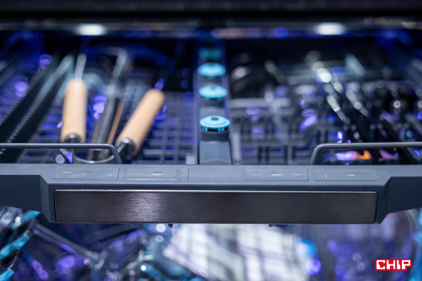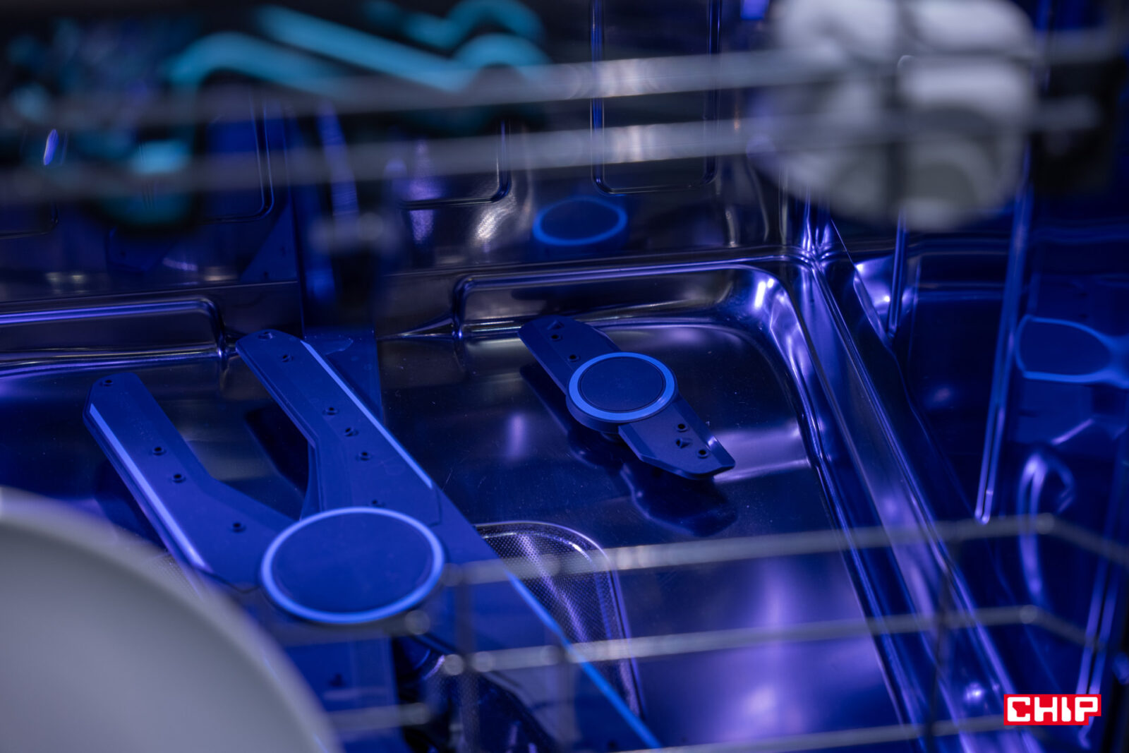 Najważniejszy jest jednak sposób mycia naczyń i dzięki przezroczystej obudowie zmywarki mogłem zobaczyć, co dzieje się w środku serii I-Pro Shine. A dzieje się sporo, bo mamy tu ramię H-Spray, które dociera z wodą dwa razy dokładniej do wszystkich miejsc, w jakich mogą znaleźć się nasze naczynia. Z kolei dla sztućców przeznaczono dedykowany system nawadniania Cutlery Shine Plus z pięcioma obrotowymi dyszami w trzecim koszu dla sztućców.