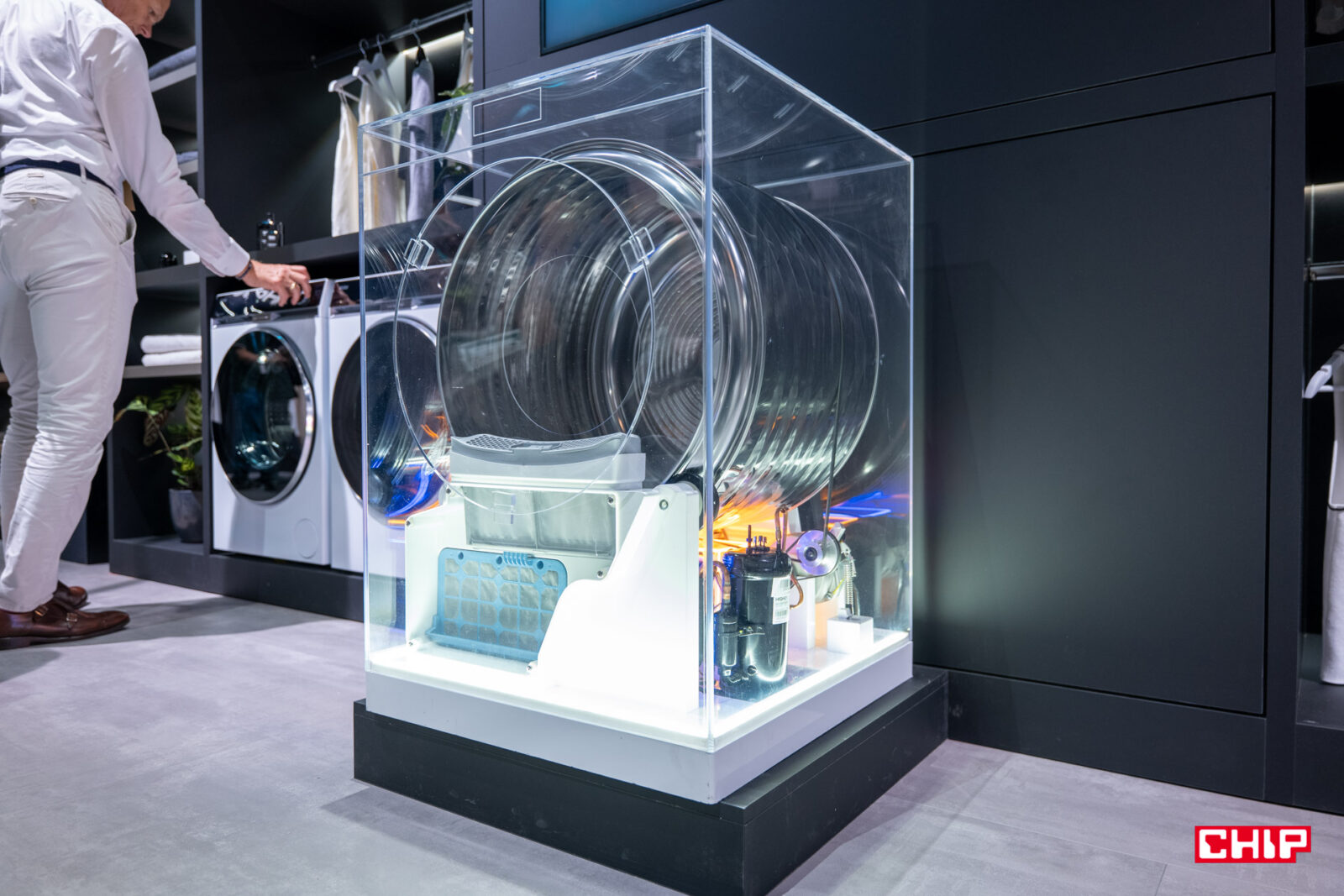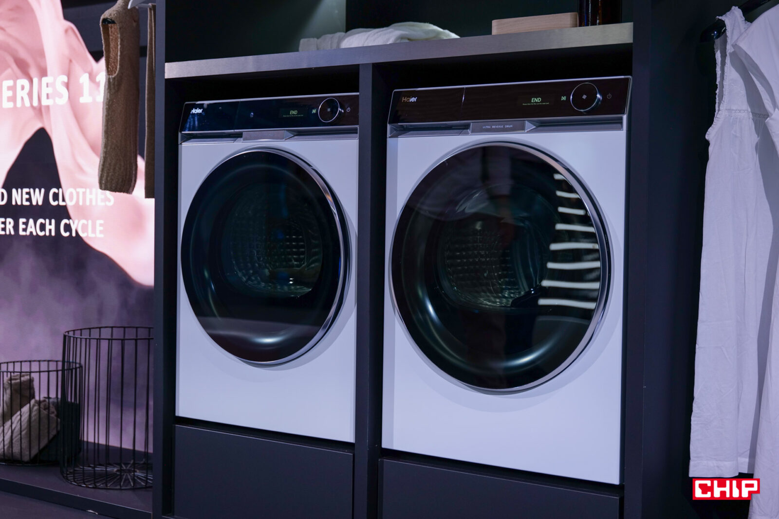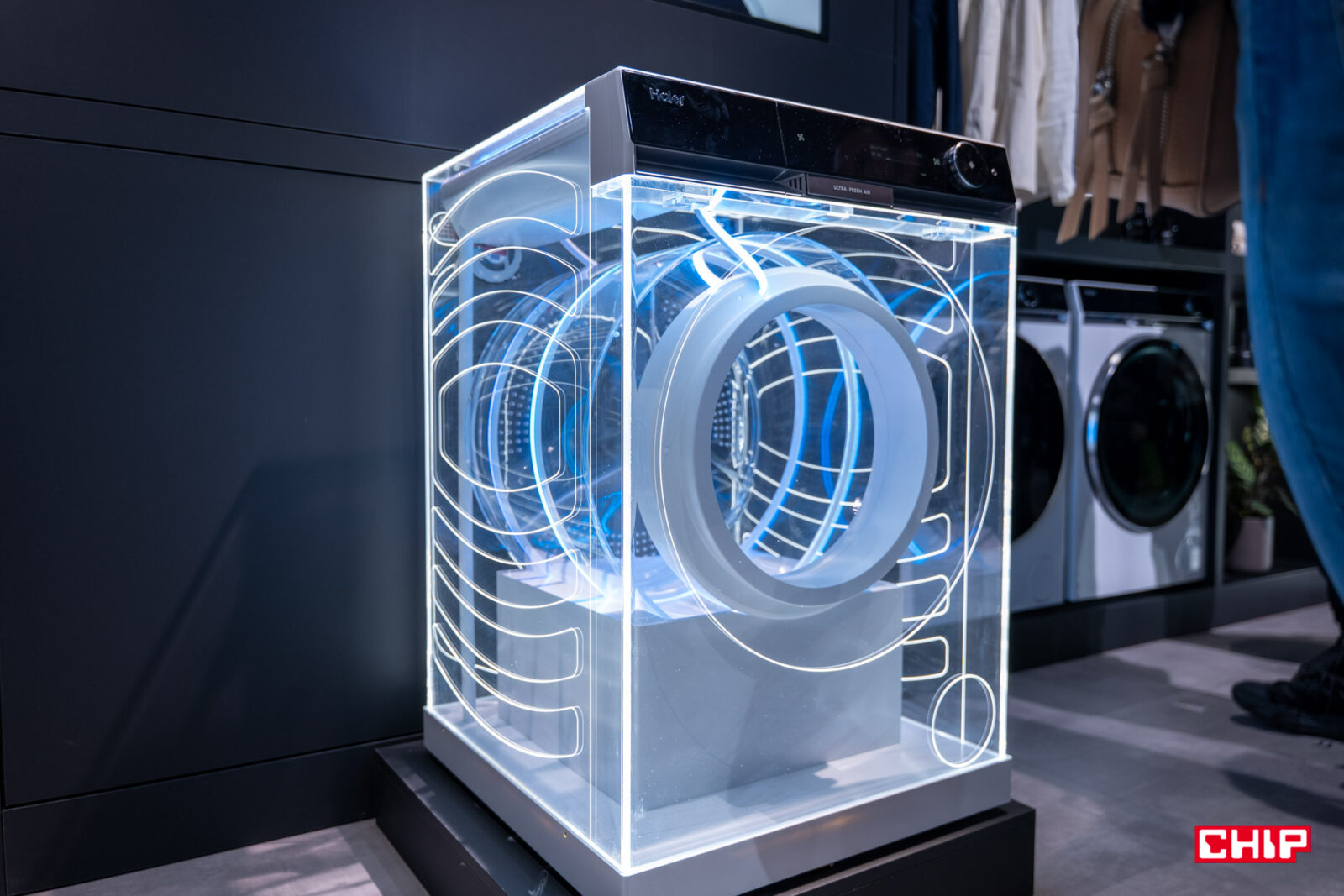 Coraz więcej pralek, pralko-suszarek oraz suszarek ma w sobie coś ekstra, przy czym nieraz kończy się to tym, że zapomina się o podstawach. Po wizycie przy produktach ze stoiska Haier mam wrażenie, że producent stara się to wszystko zbalansować tak, by jednocześnie zaoferować nowoczesne technologie, ale i nie pozbawić urządzeń skuteczności kosztem efektowności. Choć na pierwszy rzut oka, także jest efektownie – sprzęty projektowano w Mediolanie, znanym z fascynacji modą.