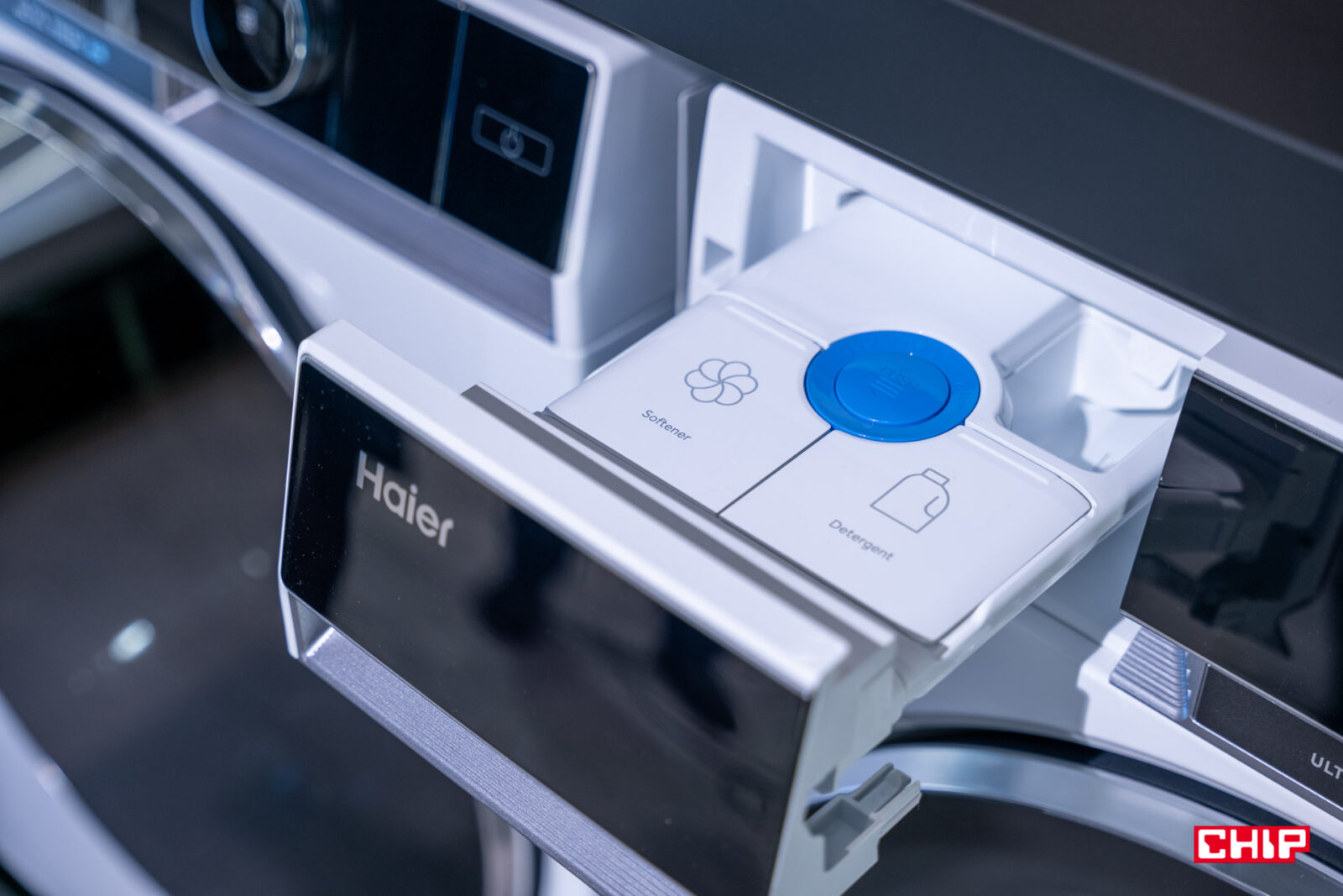 Zapewne w tym miejscu możecie mieć obawy o bakterie i inne drobnoustroje, ale i na to przygotował się Haier. Topowe pralki tego producenta korzystają z systemu antybakteryjnego ABT. Ten znacie już z poprzednich modeli pralki. Zabezpieczenie kołnierza bębna oraz szuflady na detergenty zapobiega rozprzestrzenianiu się 99,9% zarazków. Do tego resztki płynów i żeli do prania nie zostają w komorze dzięki Smart Dual Spray. Myślę, że równie przydatne jest rozwiązanie Auto Dose – w tym przypadku wystarczy dolać detergenty raz, a pralki Haier X11 same dobiorą odpowiednią ilość do programu. Wszystko dzięki analizie wagi ubrań czy zużycia wody w danym cyklu.