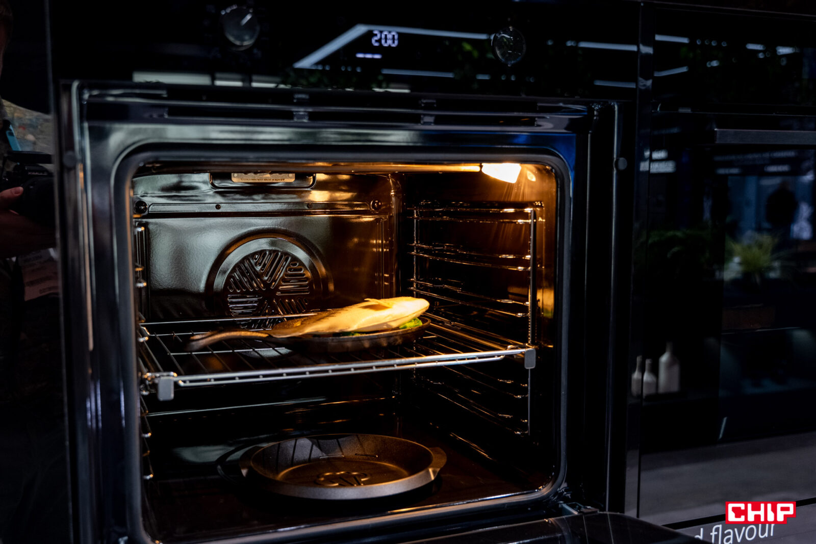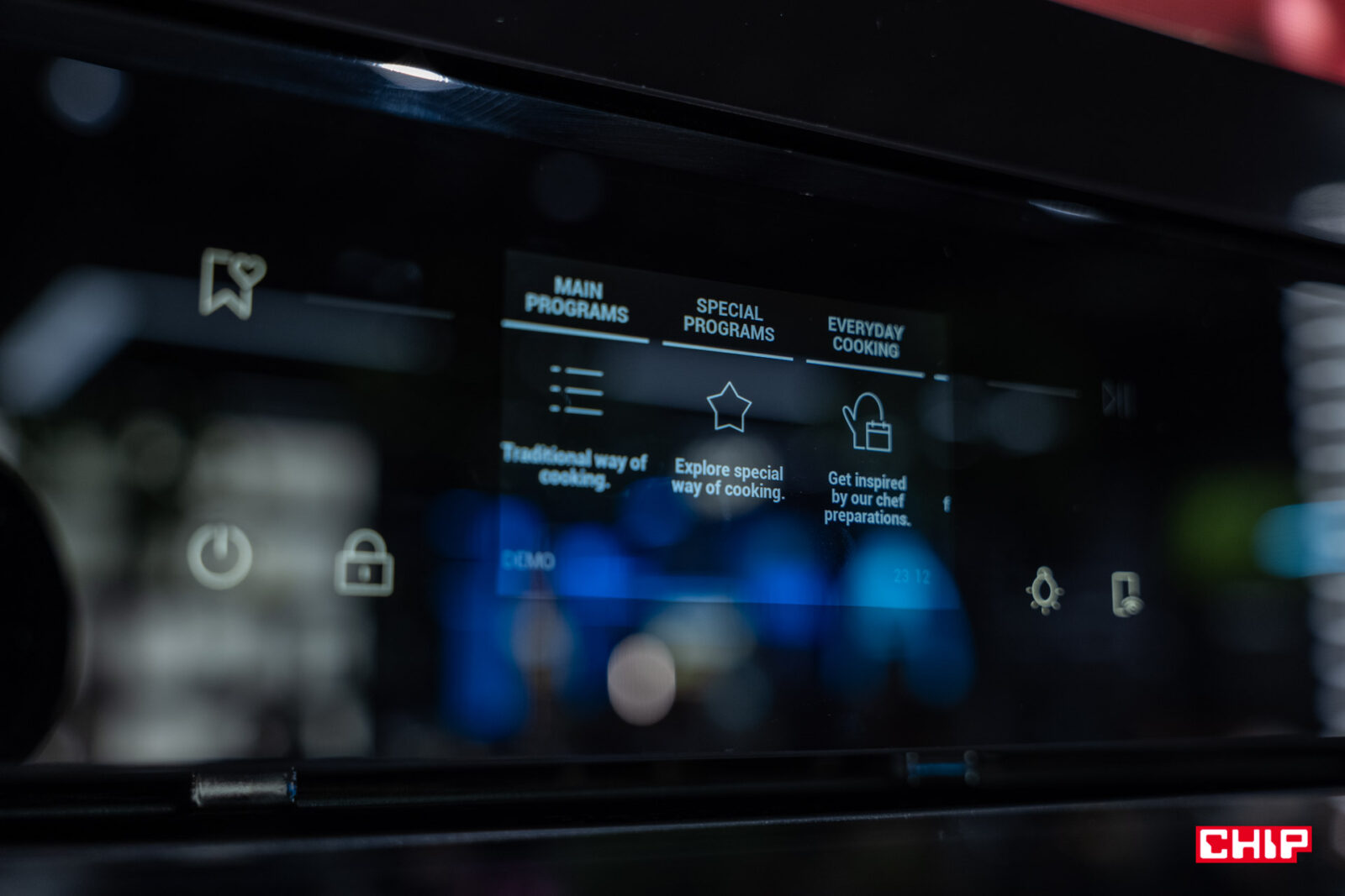 W bardziej zaawansowanych modelach możemy skorzystać z ekranu, który pozwoli nam na podejrzenie detali dotyczących procesu pieczenia, jak i zaproponuje przewodnik, jak prawidłowo piec daną potrawę. Pure Flavour Steam pomoże w tym procesie poprzez dopasowanie mocy oraz ilości pary do wybranego dania. Jest też pewna mała rzecz, która cieszy – to lepsza widoczność tego, co widzimy w piekarnikach, osiągnięta dzięki jaśniejszemu podświetleniu oraz jaśniejszemu kolorowi emalii we wnętrzu.