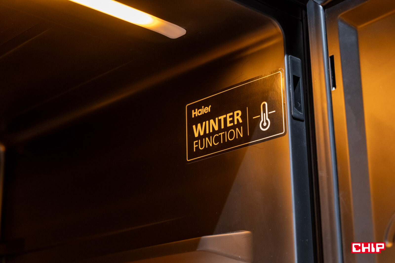 W części chłodzącej nie zabrakło innowacyjnych i przyjemnych dla oka rozwiązań. Mnie cieszyło zastosowanie podświetlenia na całej tylnej ścianie lodówki, które prezentuje się znacznie milej niż światło rzucone z góry. W lodówkach Haier z serii 70 umieszczono szuflady dedykowane przechowywaniu konkretnych rodzajów żywności. Humidity Zone to strefa, w której możemy regulować wilgotność w zależności od tego, jakie warzywa umieścimy w środku. Warzywa pokroju cebuli nie muszą korzystać z większej wilgotności, ale na przykład cukinia czy brokuł docenią większe nawilżenie powietrza.