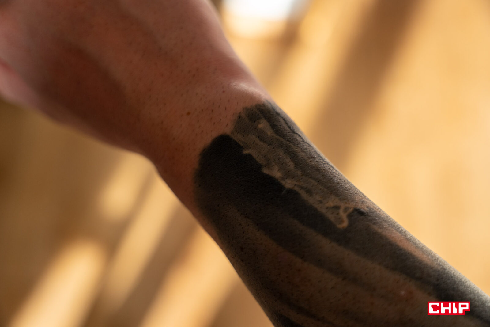 To co się nie zmieniło, to pomimo zmian w czujnik pomiary pulsu czy natlenienia krwi są niemożliwe na ręce, która jest całkowicie wytatuowana. Jeśli mamy wolne miejsca z prześwitującą skórą jak tutaj, działa: