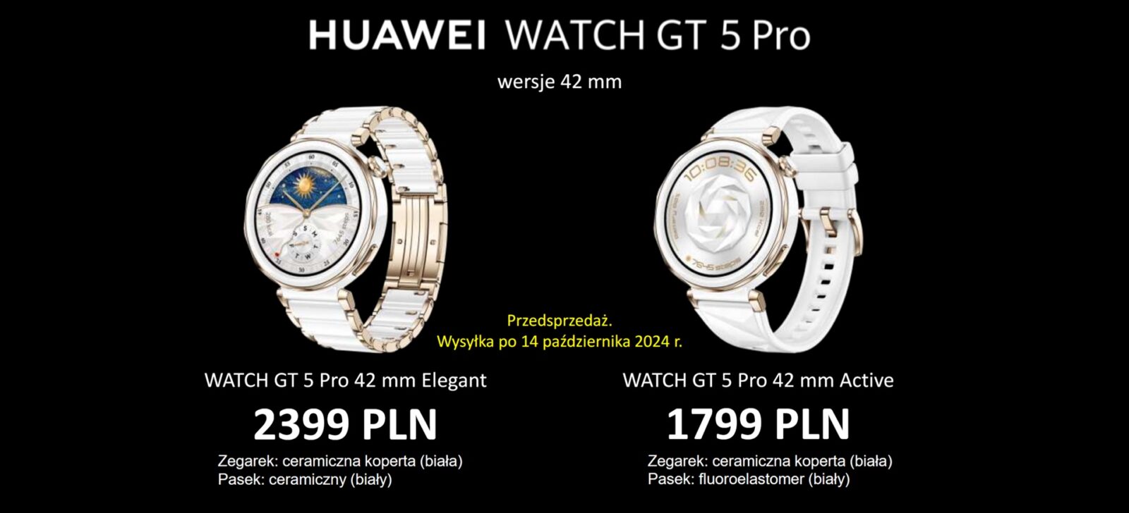 Dalej mamy modele Watch GT 5 Pro i warianty damskie z kopertą 42 mm w cenie 1 799 zł i 2 399 zł: