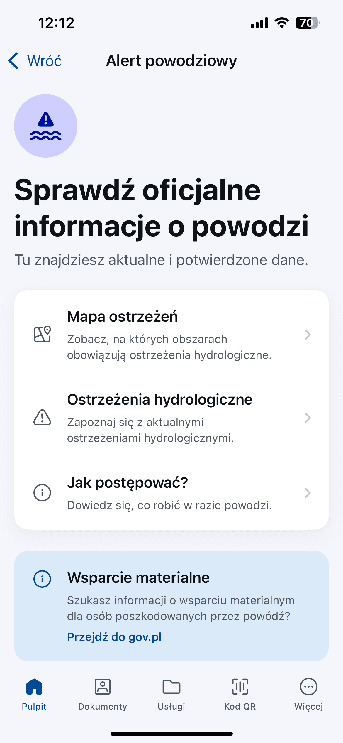 mObywatel w części przeznaczonej dla powodzian ma także przekierowanie do strony rządowej z informacjami o możliwości uzyskania pomocy finansowej.