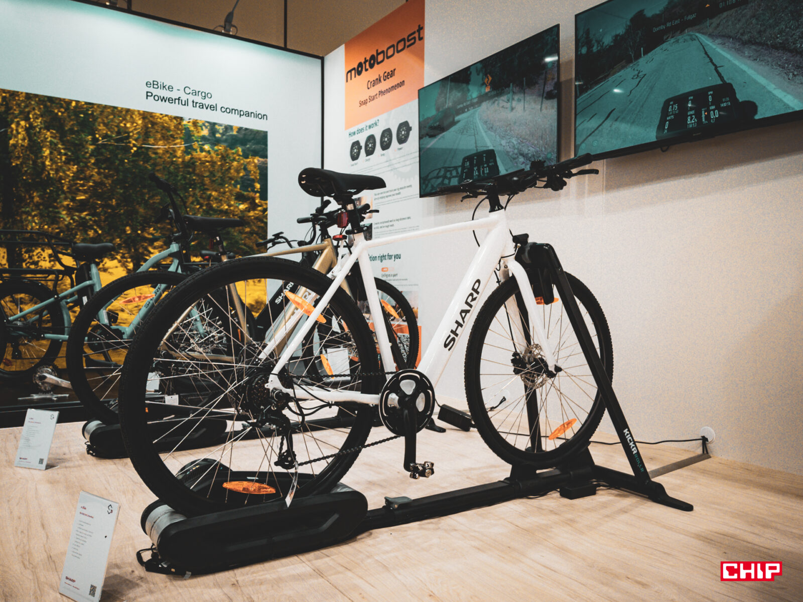 Na koniec zostawiłem sobie coś z segmentu e-mobilności i tu również Sharp może nie odkrywa Ameryki, ale dostarcza masę ciekawego sprzętu. Przede wszystkim mowa o hybrydowym rowerze elektrycznym BK-GS03, który oferuje 5-stopniowe wspomaganie elektryczne za sprawą silnika o mocy 250W. Na jednym ładowaniu możemy pokonać dystans do 85 km przy wspomaganiu tradycyjnego pedałowania. No i jest jeszcze hulajnoga elektryczna EM-KT4 z 10-calowymi kołami i zasięgu do 40 km na jednym ładowaniu. Uwagę zwraca eleganckie matowe wykończenie, tylna oś z systemem zawieszenia oraz silnik o mocy 350W.