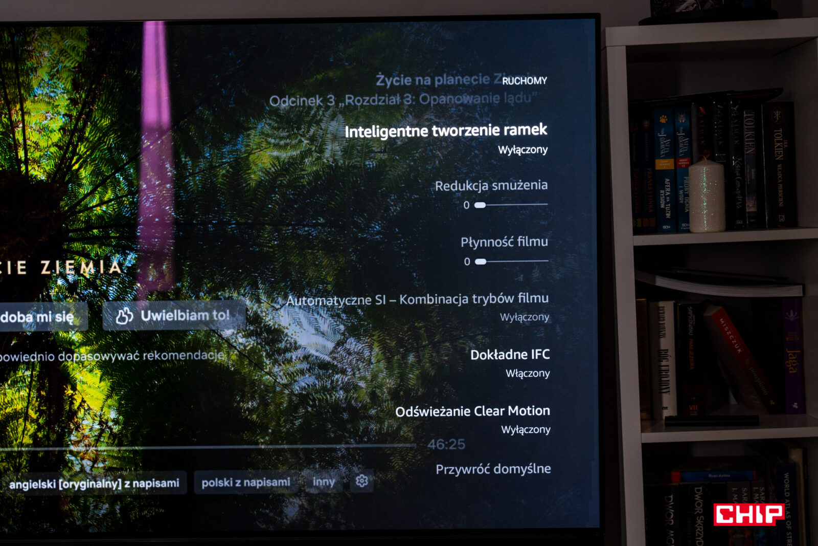Warto wspomnieć, że do dyspozycji mamy kilka różnych trybów automatycznych związanych z poprawą jakości słabszej jakości obrazu, płynności czy też automatyczny dobór jasności, czy temperatury barwowej. Większość z nich działa dobrze i nie psuje obrazu, jak to często mają w zwyczaju, ale nie do końca polubiłem się z automatycznym dopasowaniem jasności, bo w nocy zdecydowanie mi jej brakowało i musiałem poprawiać ją ręcznie. Szczególnie w grach obraz był zbyt ciemny.