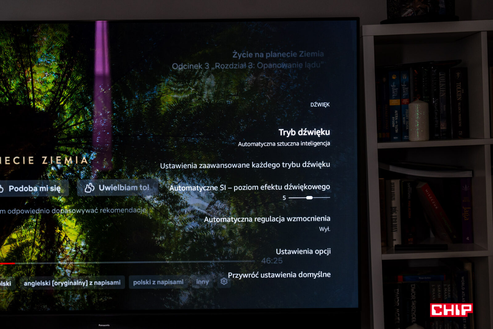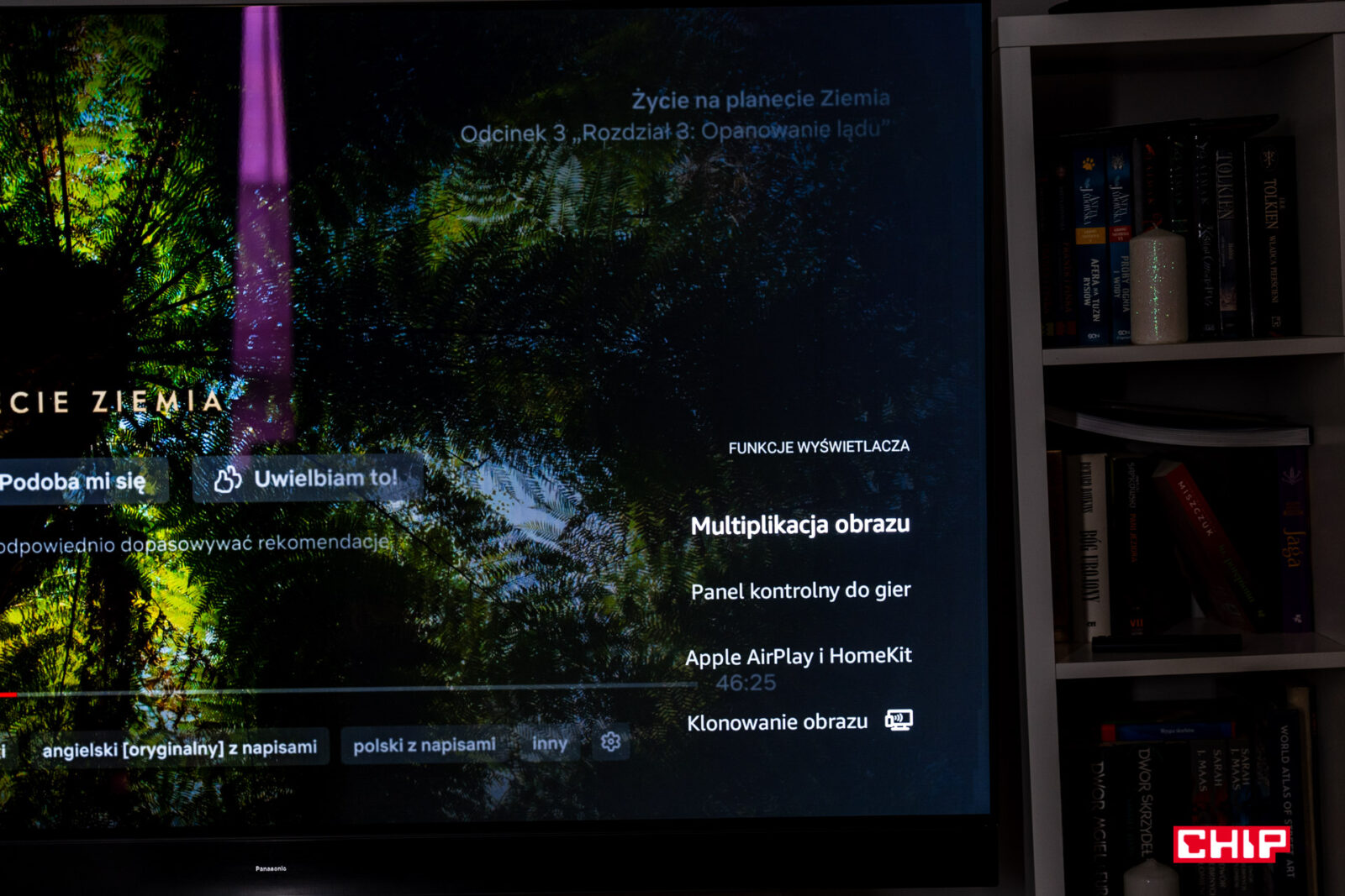 Panasonic dobrze wiedział, co boli ich telewizor i w tym roku zafundował nam system Fire TV Amazonu. W końcu interfejs nie straszy. Jest ładny, kolorowy, szybki, stabilny i intuicyjny, a panel Ustawień modnie przezroczysty. Można go dodatkowo personalizować pod kątem wyglądu i układu Menu głównego, dodawać widżety czy korzystać z asystenta głosowego Amazon Alexa. Przeskok cywilizacyjny to aż za mało powiedziane i tak, mamy tu obsługę Apple Home oraz AirPlay, a w bonusie można zamienić ekran telewizora w efektowny obraz i jest do tego dedykowany tryb.