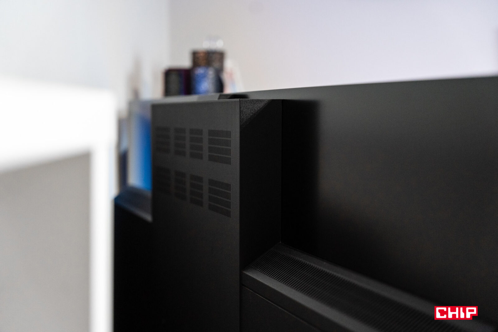 Obudowa Panasonica Z95A cieszy oko. Cieniutkie ramki wokół ekranu, solidna metalowa konstrukcja (lekko ponad 30 kg z podstawą) i… częściowo smukła obudowa. Częściowo, bo dużo miejsca zajmują tu głośniki i jest to bardzo dobra informacja, do której niedługo przejdziemy.