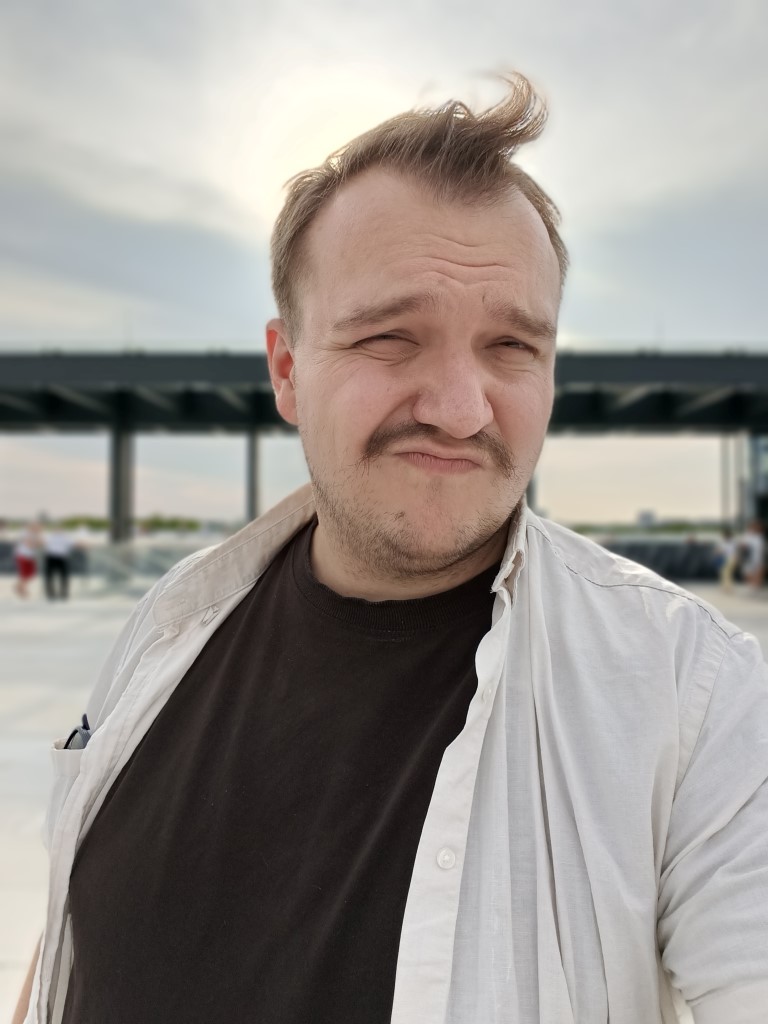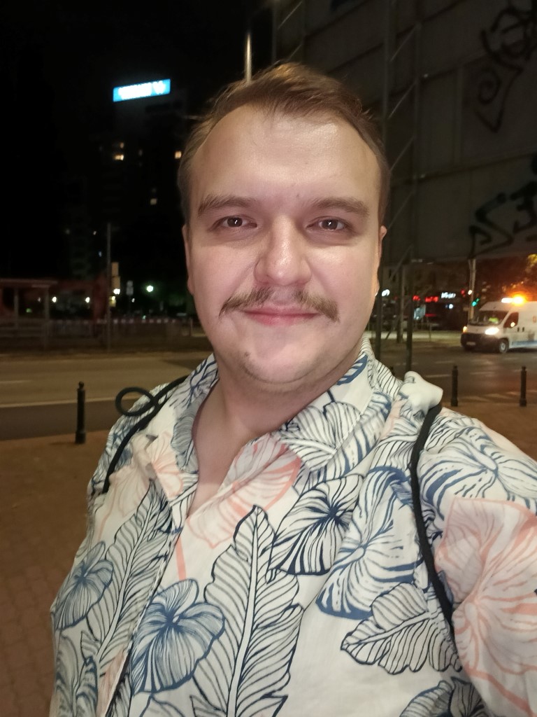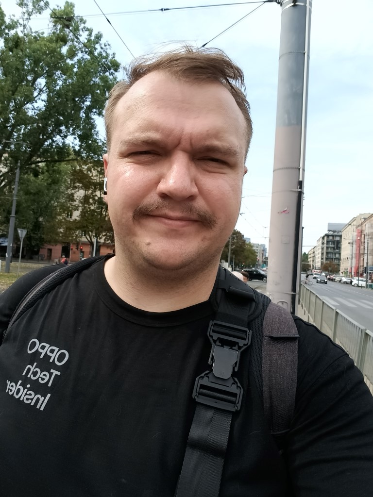 Dobrze spisuje się za to przedni aparat, ale to raczej wynika z tego, że przednie aparaty mają niski standard w ostatnich latach. Szczegółowość prezentuje się dobrze, a twarz nie jest sztucznie wygładzona. Jest nawet miejsce na pewne rozmycie za twarzą bez włączania trybu portretowego. Cyfrowo dodane bokeh spisuje się różnie i najwięcej problemów ma w okolicy włosów oraz uszu. Przy robieniu zdjęć należy jednak zadbać o odpowiednią ilość światła, gdyż szczegółowość spada dość znacznie i dość szybko.