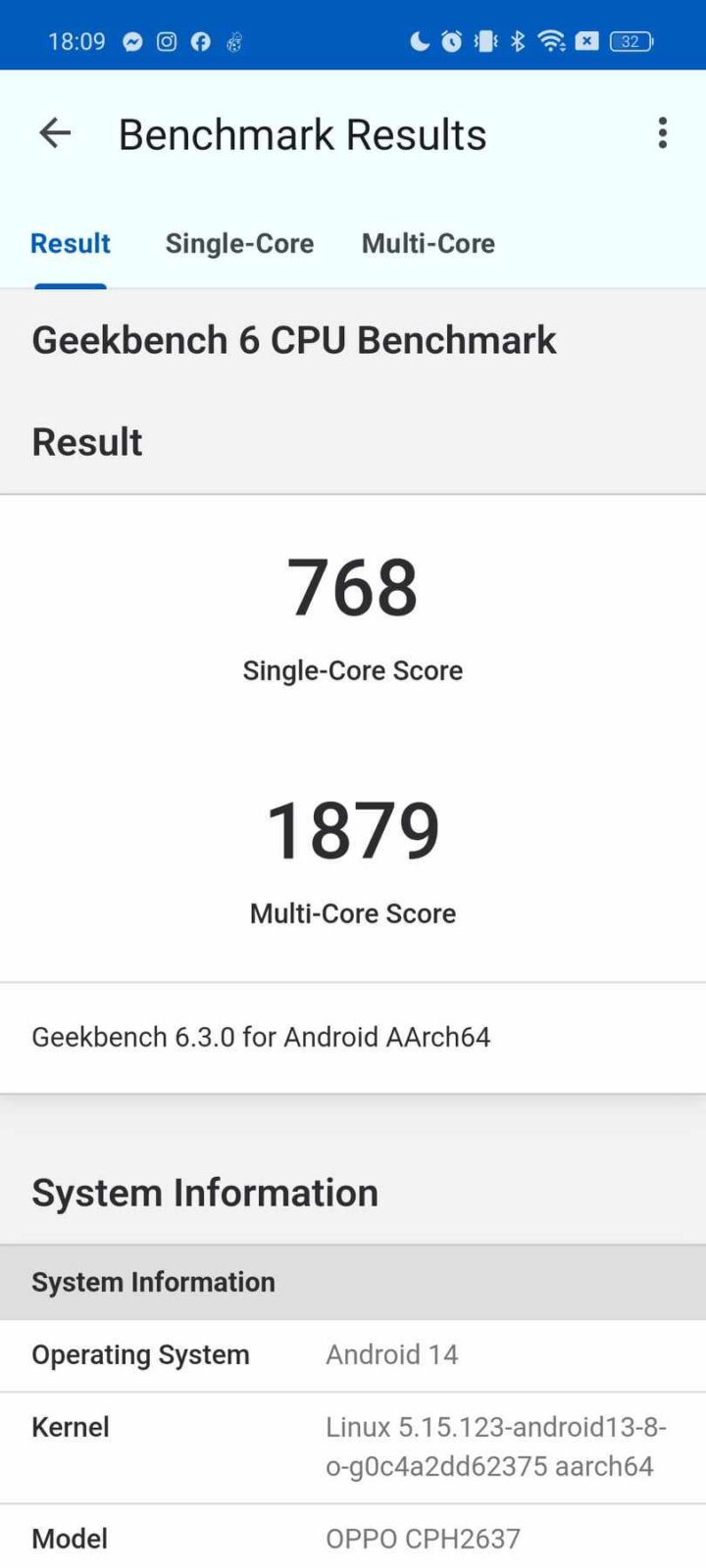 Nowy średniopółkowiec Oppo to „nowy” układ obliczeniowy, tym razem Mediatek Dimensity 6300. Mediatek w dalszym ciągu wkłada do swoich układów wiekowe rdzenie Cortex – dwa mocne A76 z taktowaniem 2,4 GHz, a sześć rdzeni A55 z taktowaniem 2 GHz. To regres względem Oppo Reno 11 F z rdzeniami A78, mocniejszym układem graficznym (Mali G68-MC4 kontra Mali G57-MC2) i przede wszystkim – pamięcią UFS 3.1, szybszą niż UFS 2.2 z Reno 12 FS. Telefonowi bliżej osiągami do Oppo A79, który przecież kosztuje połowę jego ceny.