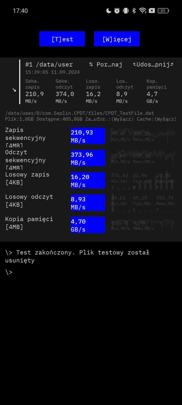 Wydajność na co dzień także nie była dla mnie przedmiotem szczególnego zadowolenia. Przy korzystaniu z Oppo Reno 12 FS na aplikacje się czeka i to nieraz całkiem długo. Smartfon nie ma problemów z wczytywaniem informacji, ale odbywa się to wolniej niż chociażby przy Reno 11 F. Najwięcej problemów jest wtedy, gdy aplikacja musi szybko pobrać sporą ilość danych z internetu. Wolno trwa także edytowanie i renderowanie filmów. Przycięcia animacji na szczęście nie zdarzają się często, ale gdy już się zdarzają, to dotykają każdej czynności aktualnie robionej na smartfonie. Dobrze spisuje się zapas pamięci operacyjnej – 12 GB zarządzane jest tak, by faktycznie dało utrzymać się sporo aktywnych procesów. Bezproblemowo utrzymywałem dwa, trzy angażujące mocno podzespoły programy w stanie aktywności, choć te musiały się „odmrozić”.