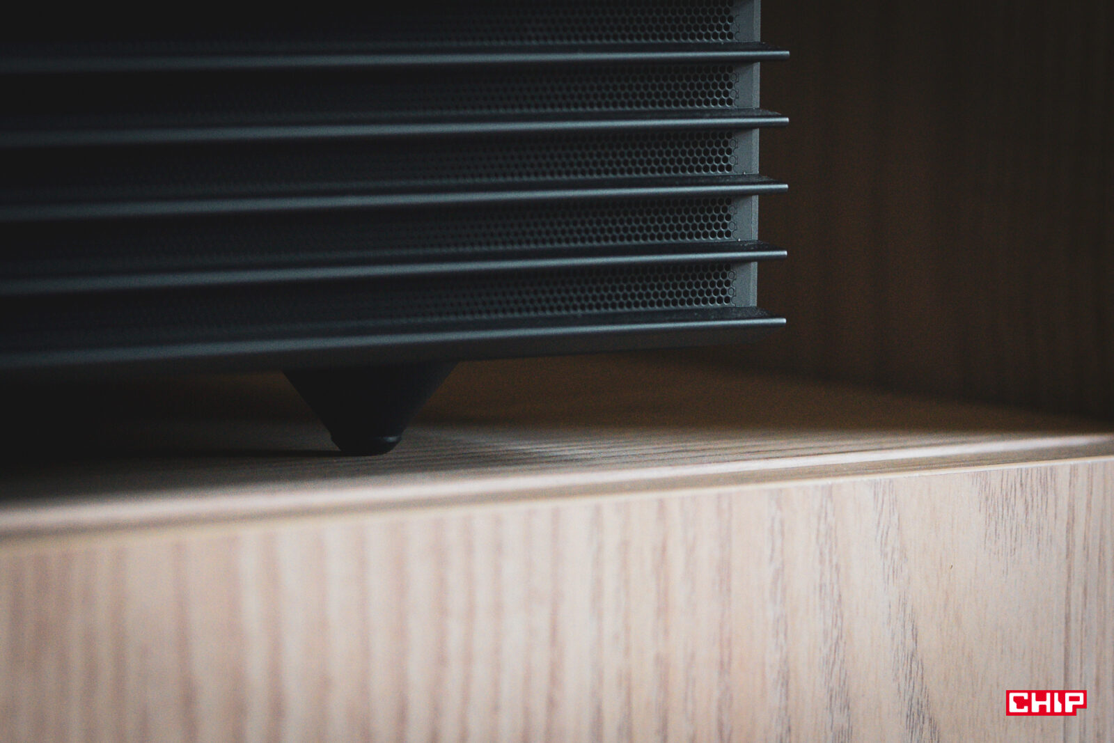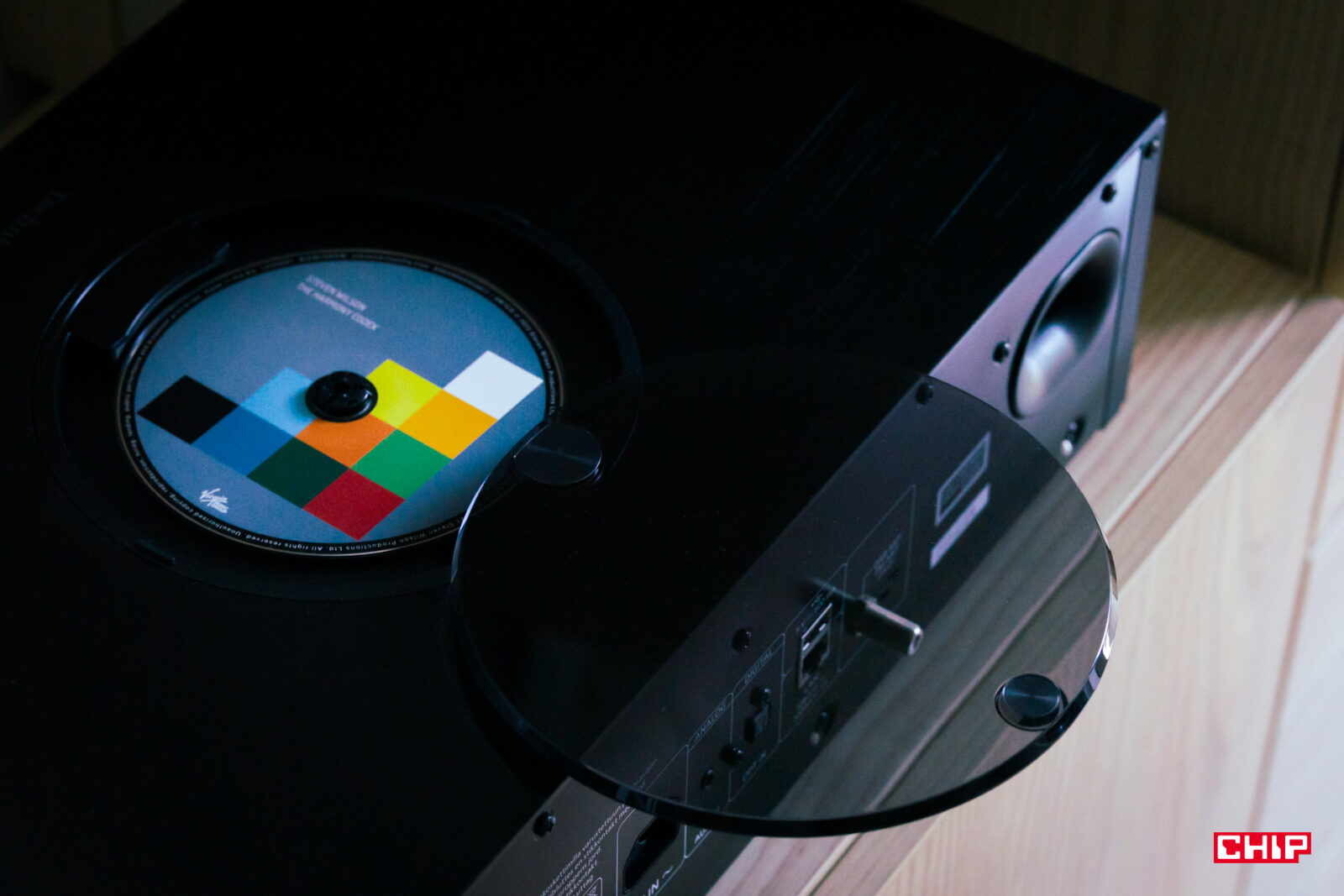 Usadowiony na stożkowych nóżkach Technics Ottava SC-C70MK2 ani drgnie, a ich obecność nie jest tu przypadkowa. Umieszczony na spodzie konstrukcji subwoofer o średnicy 12 cm dmucha w podłoże strumieniem niskich częstotliwości. Na froncie pod elegancką maskownicą kryje się za to para głośników niskotonowych o średnicy 8 cm, a także 2-centymetrowe głośniki wysokotonowe. Na górze znalazło się miejsce dla odtwarzacza CD z klapką, którą zamiast unosić, przesuwamy na boki, a magnetyczny mechanizm blokowania pozycji ułatwia otwieranie i zamykanie. Dioda w środku delikatnie podświetla kawałek obracającego się w szufladzie nośnika i stanowi ciekawy akcent dekoracyjny.
