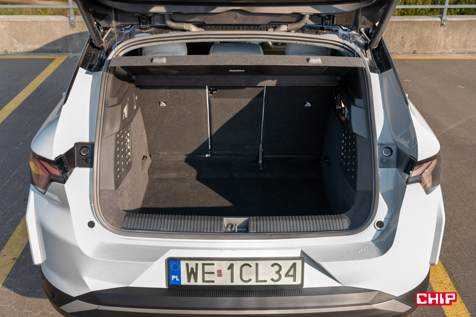 Elektryczny Scenic może pochwalić się dużym bagażnikiem. Jest głęboki, wysoki, foremny, a jego pojemność to 545 litrów. Bagażnik mamy tylko jeden, producent nie zdecydował się na umieszczenie drugiego pod maską auta.